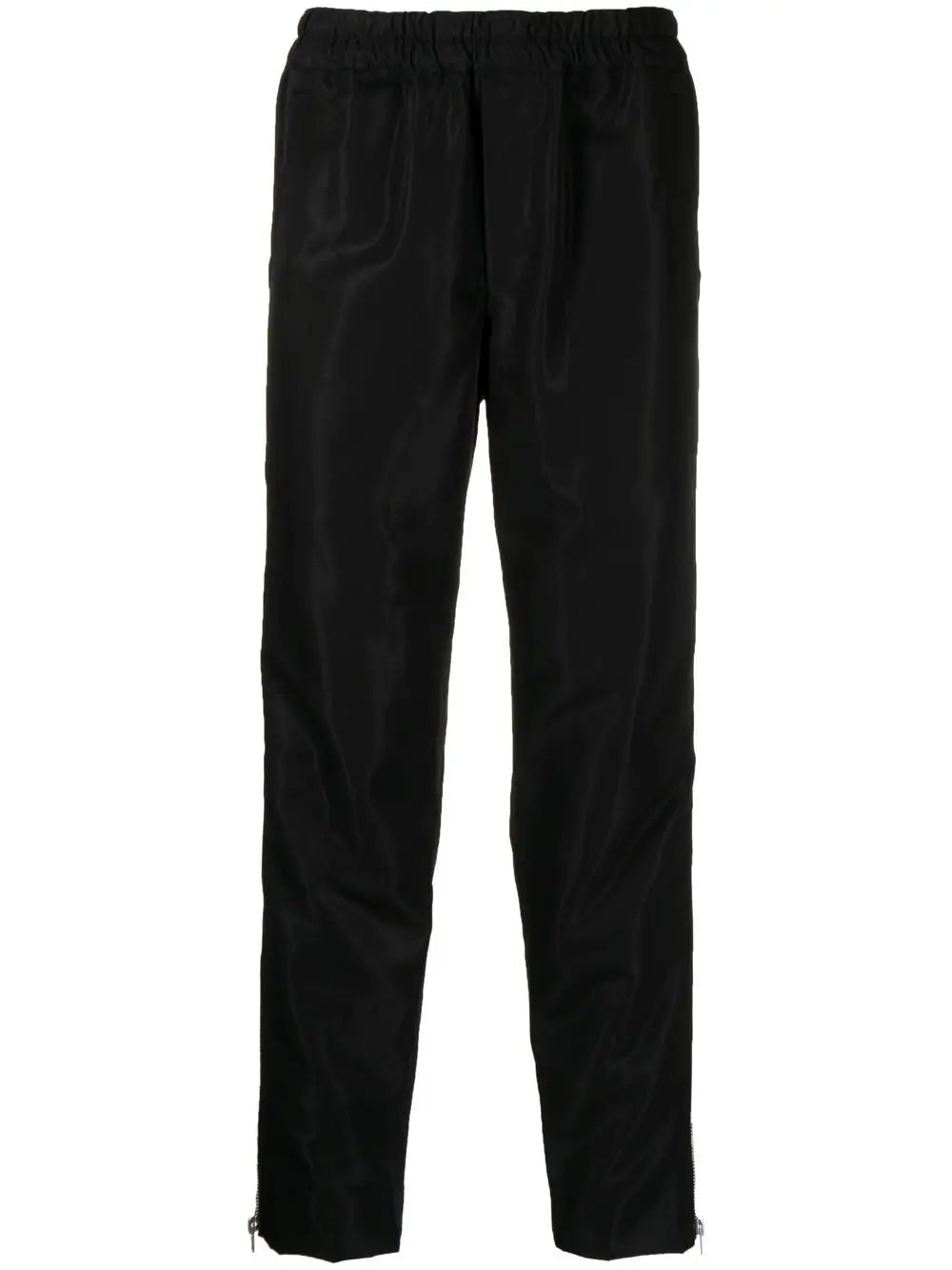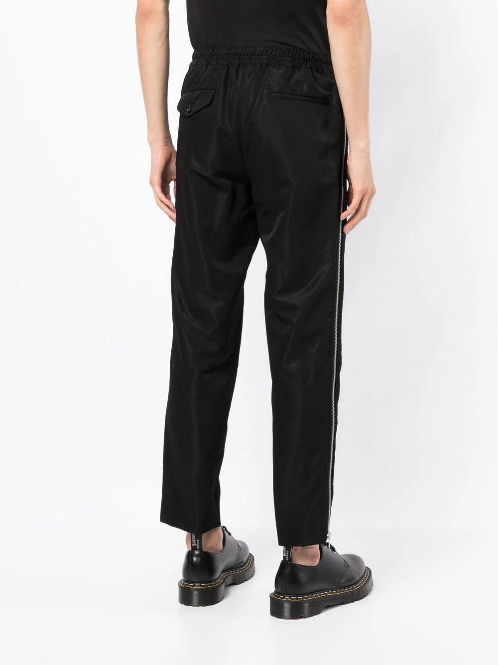 side zip-detail trousers from BLACK COMME DES GARÇONS featuring short side zip fastening, elasticated waistband, two side zip-fastening pockets, rear welt pocket, rear flap pocket and jet black.