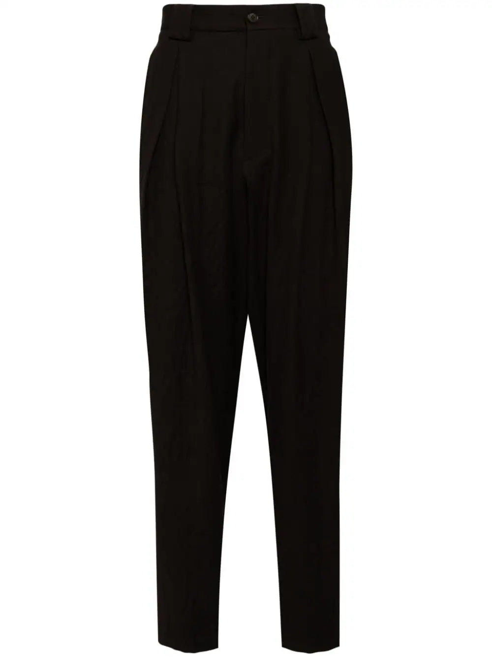 ganache brown virgin wool flannel crinkled finish box-pleat detail front button and zip fastening belt loops two front welt pockets two rear welt pockets press-stud fastening