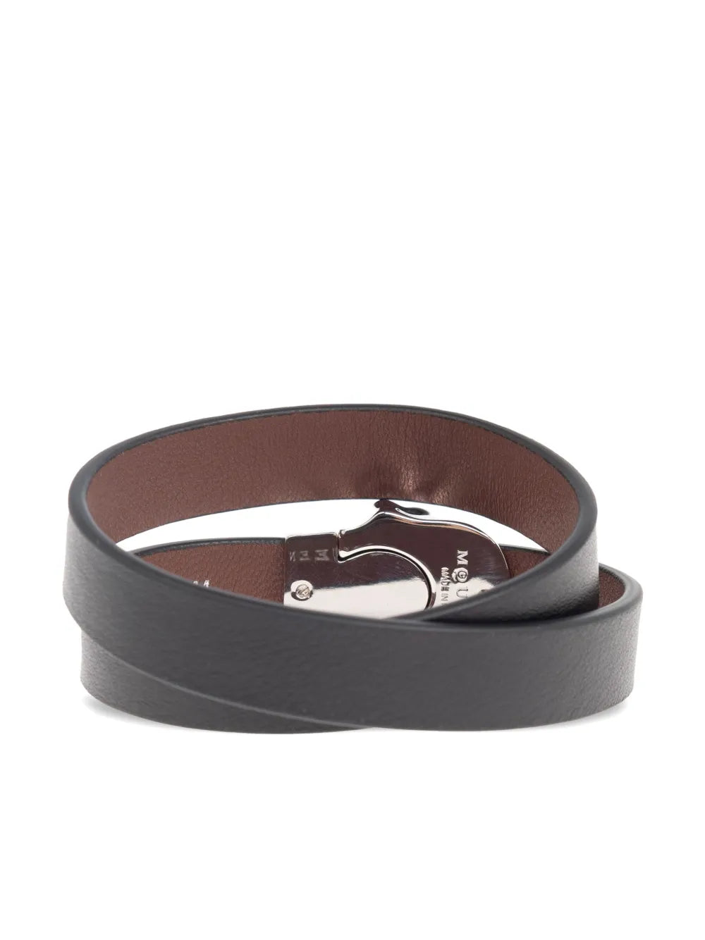 Expertly crafted with a sleek wraparound design, the Skull-Appliqué Bracelet features a smooth black grain finish. Elevate your style with this unique and stylish accessory, perfect for any occasion.
