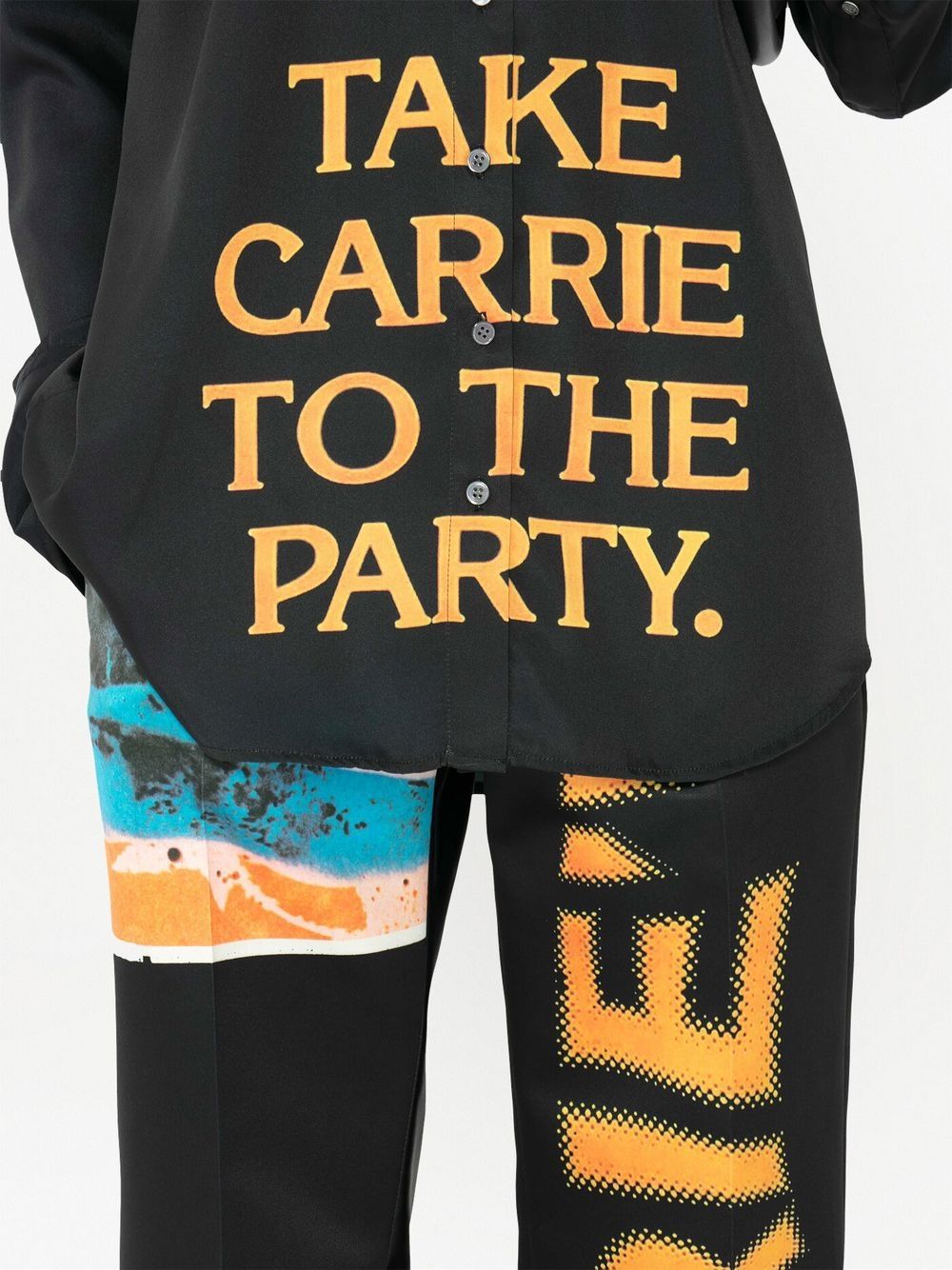 slogan-print cotton shirt from JW Anderson featuring black, orange, cotton, slogan print to the front, graphic print to the rear, classic collar, front button fastening, long sleeves, buttoned cuffs and curved hem.