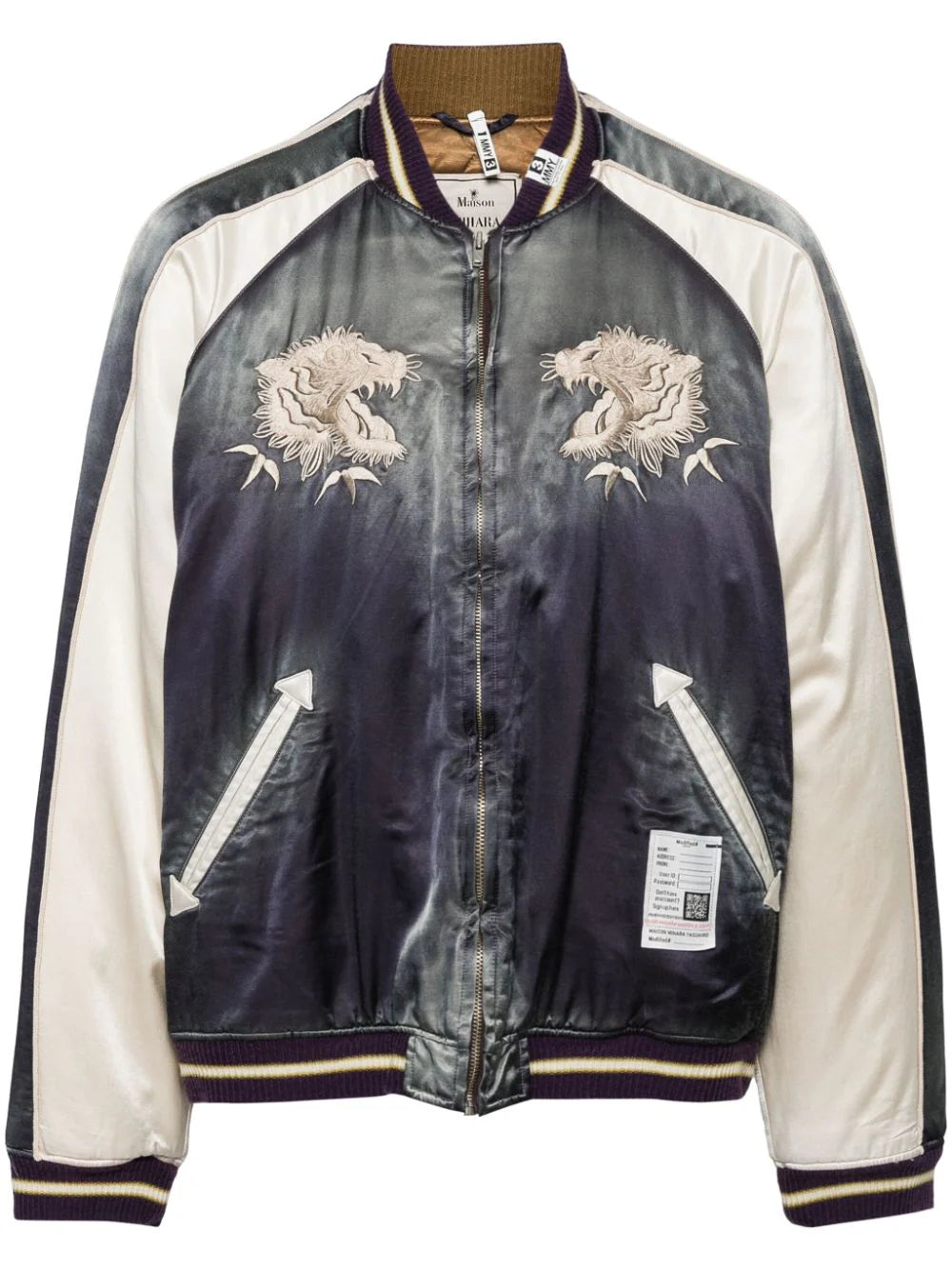 purple/multicolor cotton blend front zip fastening padded design panel detailing baseball collar embroidered motif two side slit pockets logo patch to the front long sleeves ribbed cuffs and hem straight hem diamond-quilted lining internal pocket