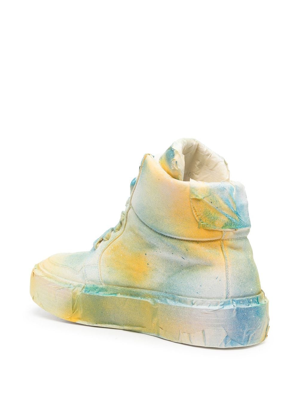 spray-effect high-top sneakers from GUIDI featuring multicolour, leather, spray-paint effect, round toe, front lace-up fastening, branded insole, ankle-length and flat rubber sole.
