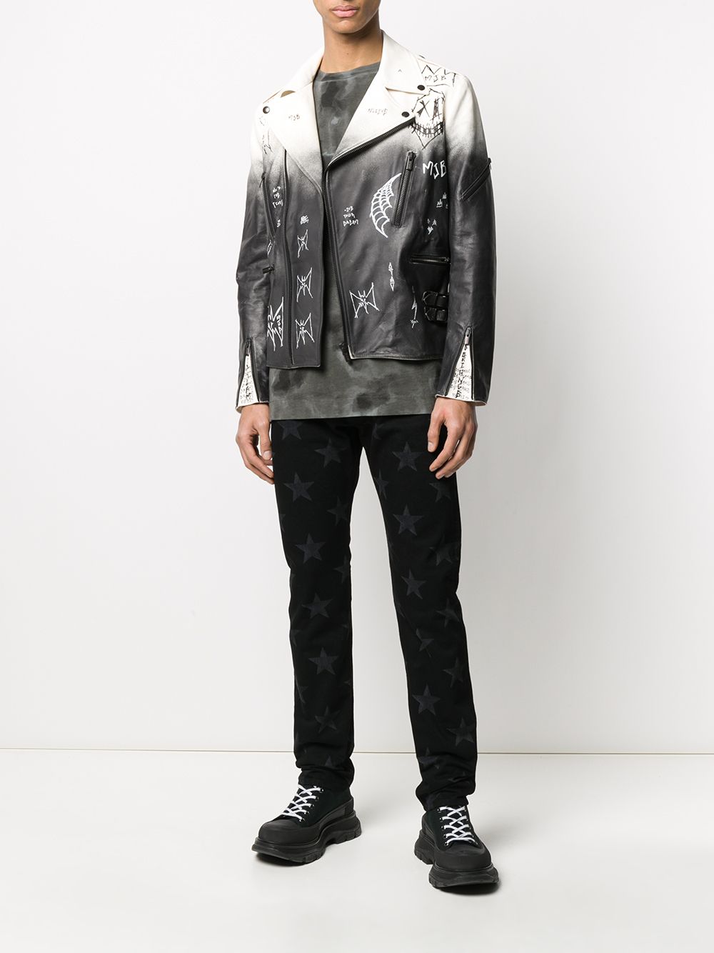 Star printed cotton trousers from Takahiromiyashita The Soloist featuring a button fastening, belt loops, side pockets, a straight leg, rear pockets and a star print.
