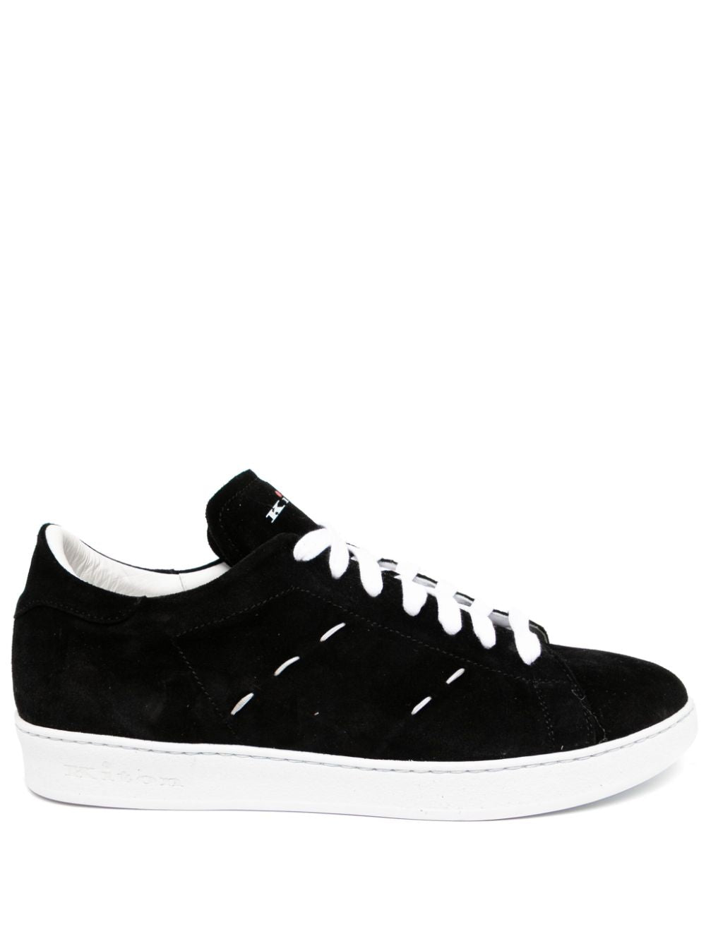 These Stitching Leather Sneakers feature stylish black and white stitching and a logo-print tongue, adding a touch of personality to your outfit. With a comfortable round toe and durable flat rubber sole, these sneakers are the perfect blend of fashion and function. Elevate your shoe game with these trendy kicks.
