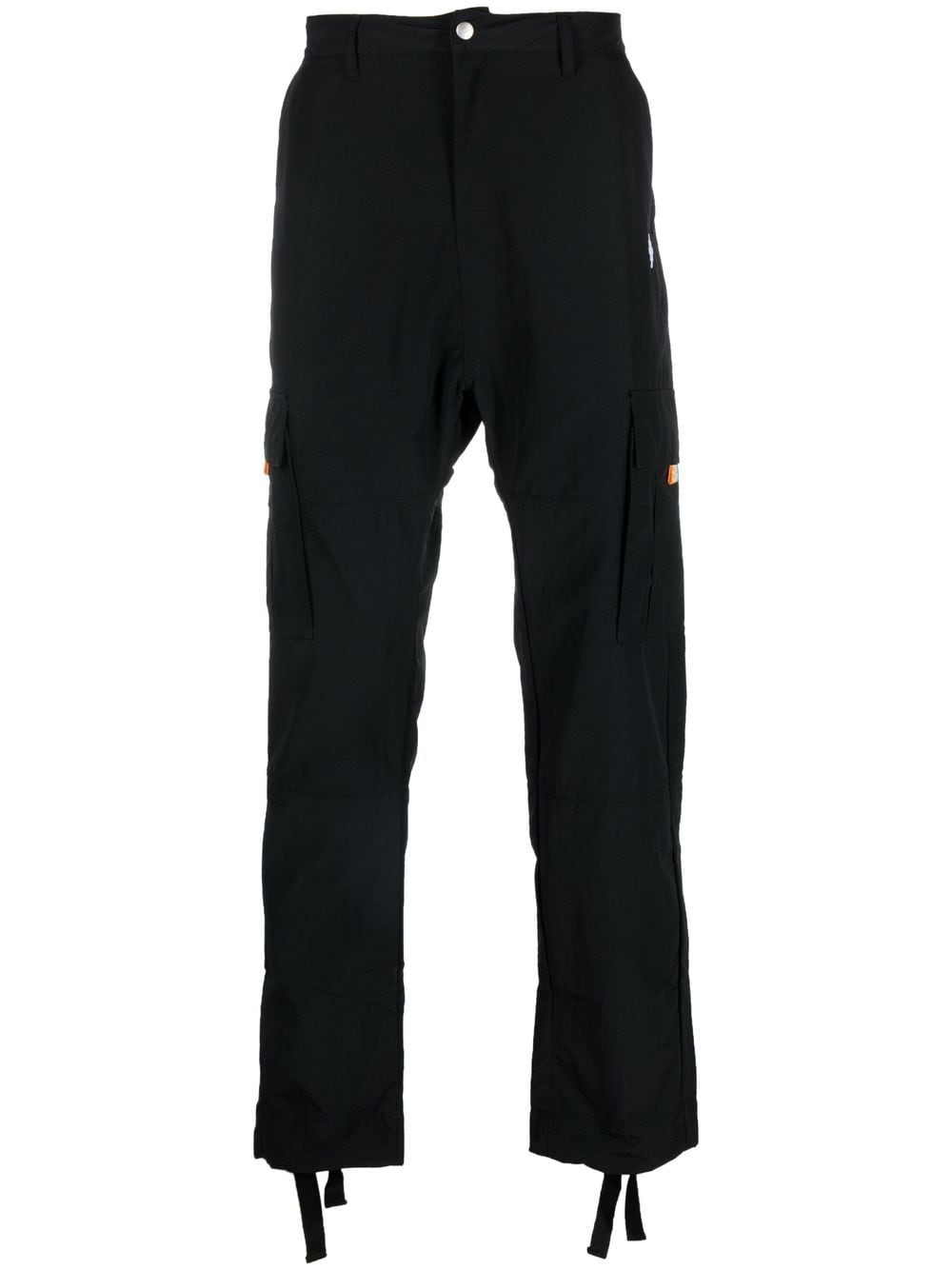 straight-leg cargo trousers from Marcelo Burlon County of Milan featuring black, belt loops, front press-stud and zip fastening, embroidered logo to the front, two side cargo pockets, straight leg and drawstring hem.