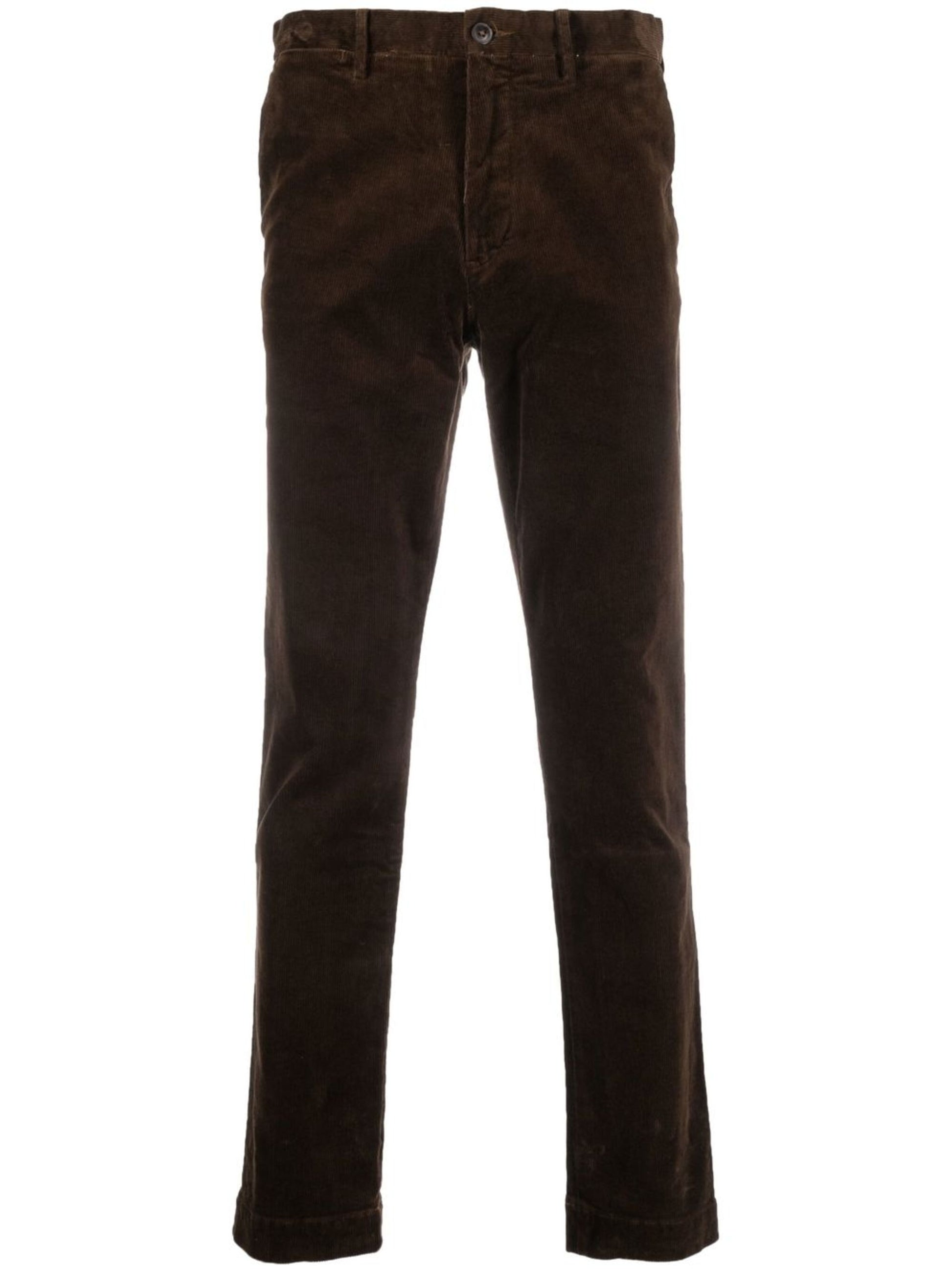 Expertly crafted with a chocolate brown stretch-cotton corduroy, these straight-leg trousers provide a slim and sleek fit. Designed with a mid-rise and belt loops, they also feature a concealed fly and button fastening for a polished look. Complete with four pockets for convenience and versatility.