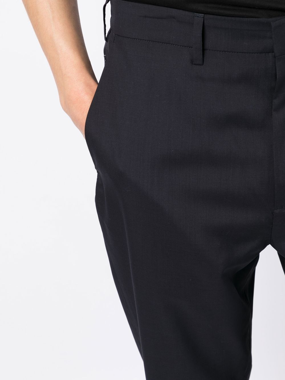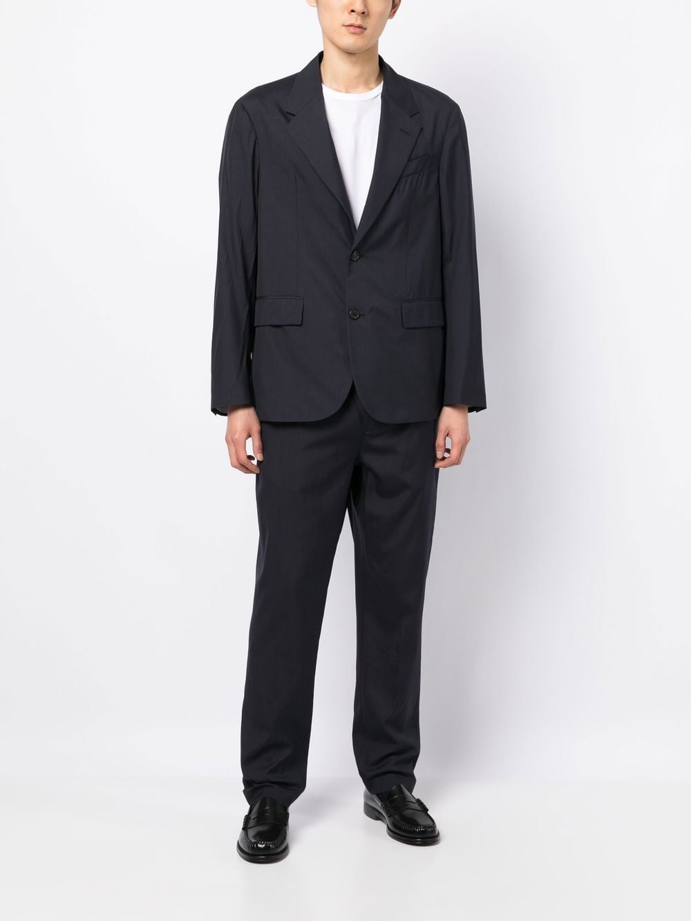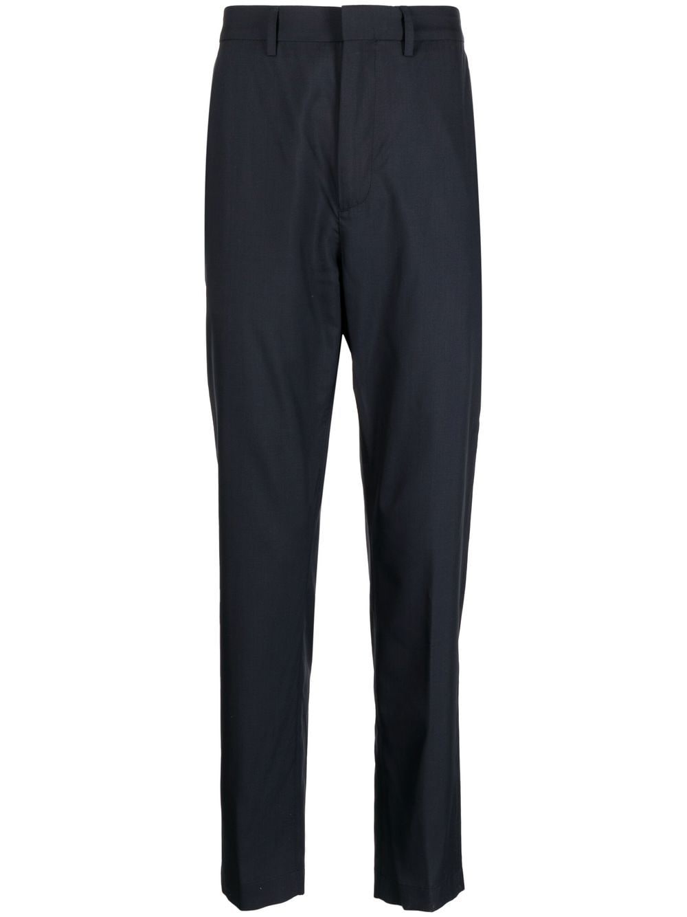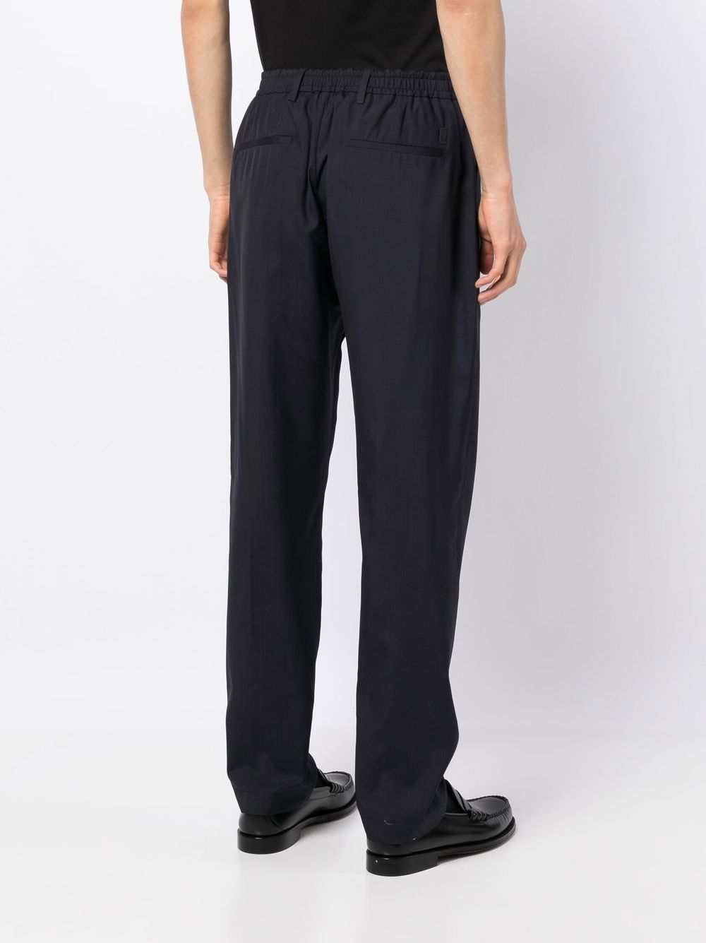 straight-leg trousers from DUNHILL featuring navy blue, wool-silk blend, elasticated waistband, straight leg, concealed front fastening, two side slit pockets and two rear welt pockets.