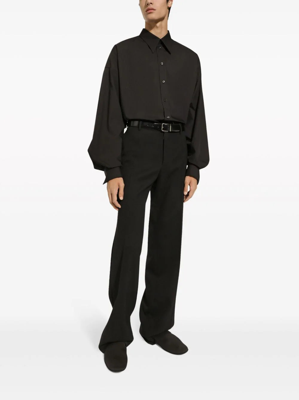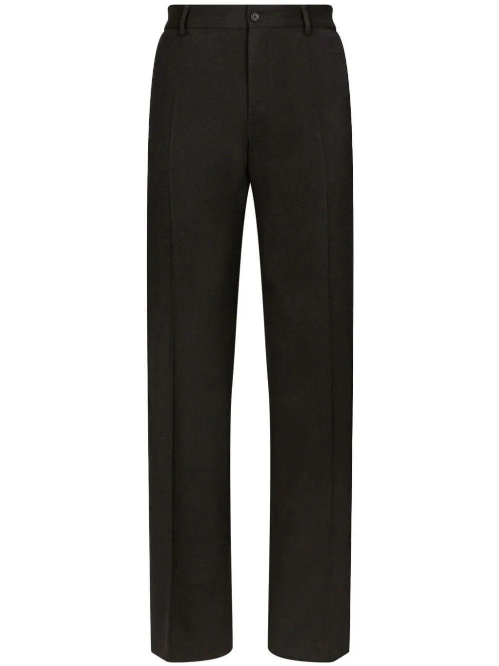 black stretch-wool concealed fly and button fastening belt loops two side slit pockets two rear button-fastening jetted pockets straight leg