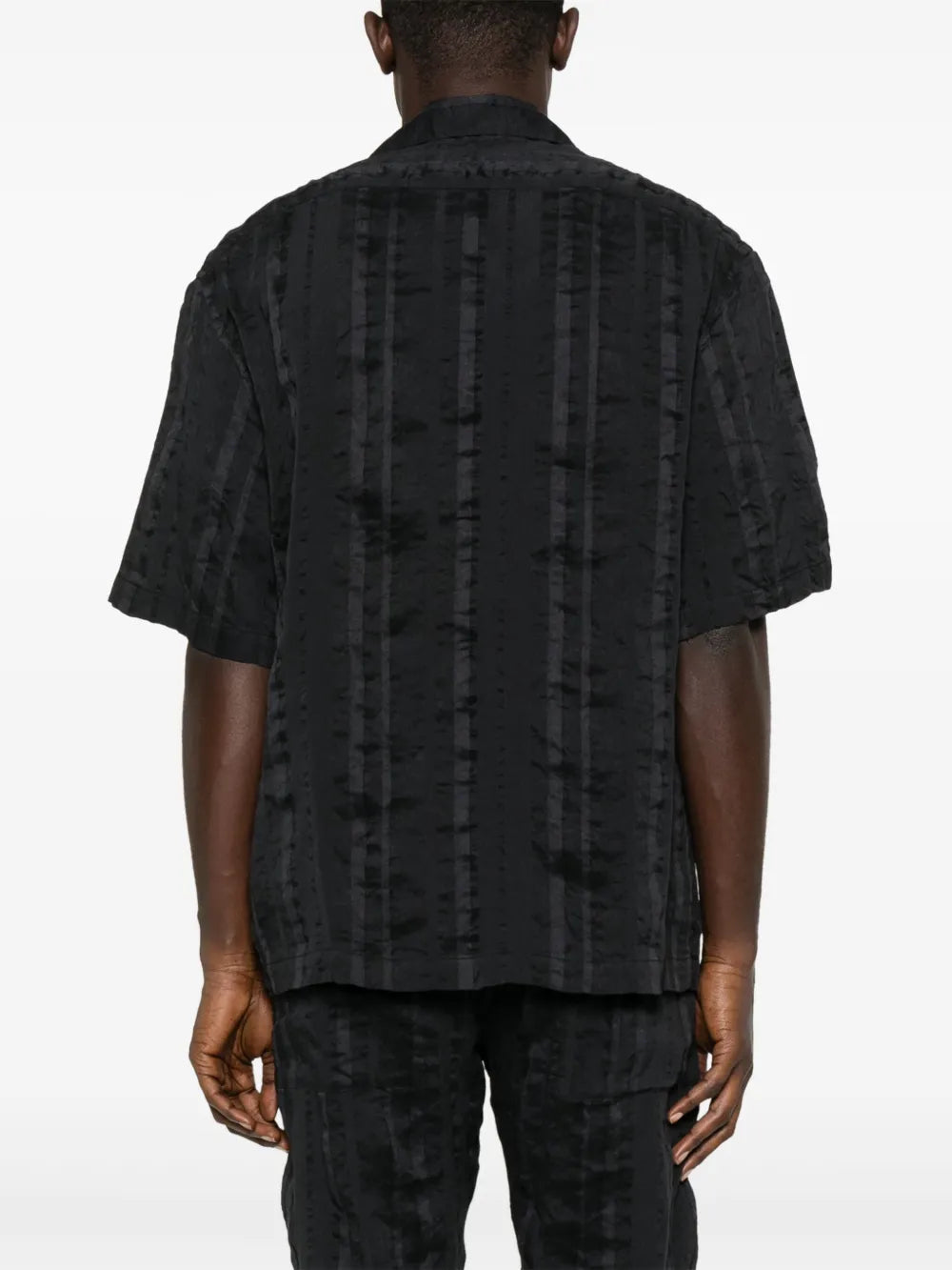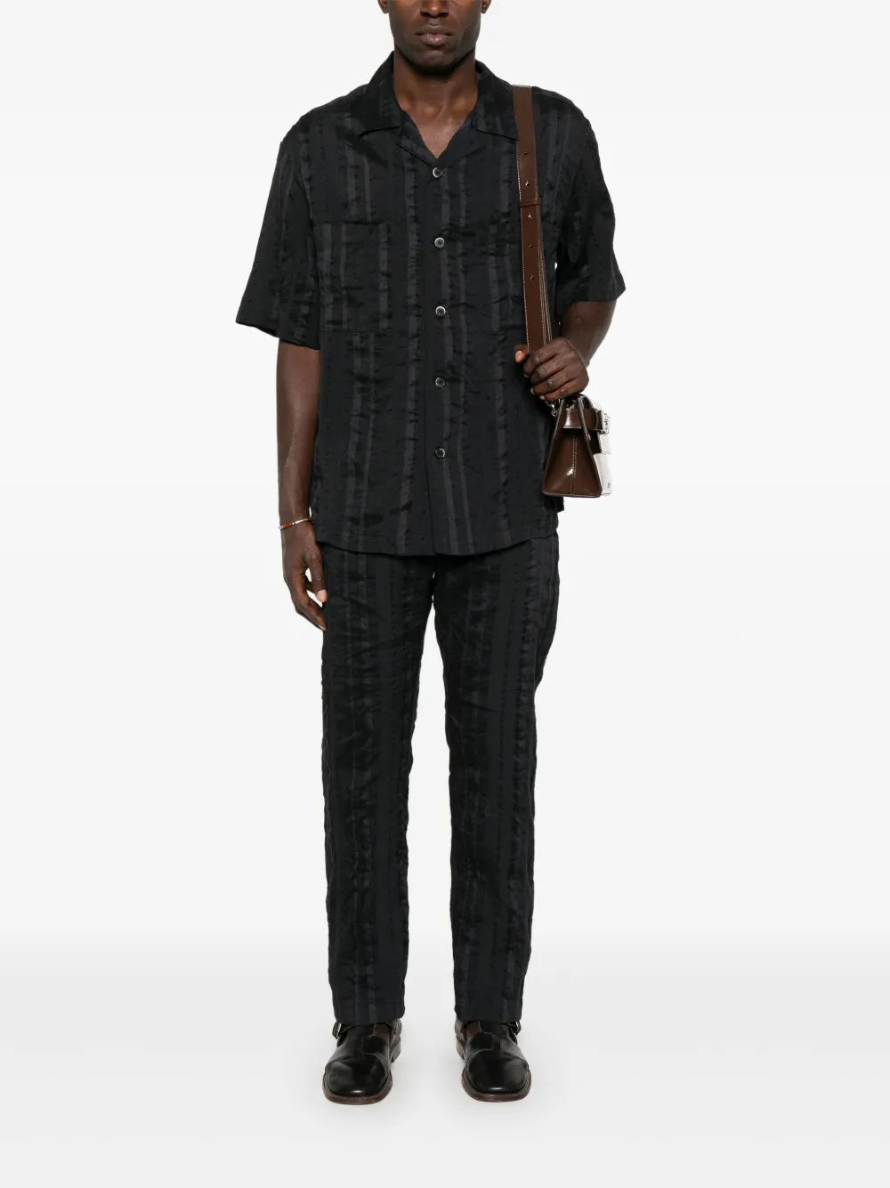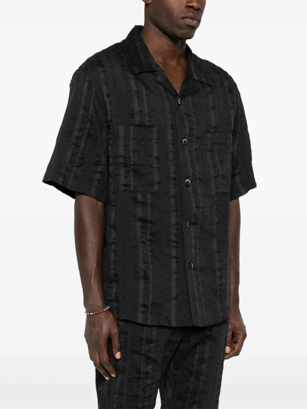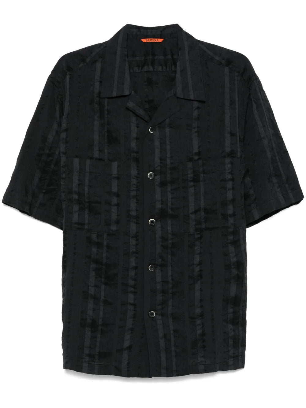 Expertly crafted with a front button fastening and two chest patch pockets, this Striped Shirt is both stylish and functional. The classic black design adds a touch of sophistication, while the practical features make it perfect for any occasion. Upgrade your wardrobe with this must-have piece.
