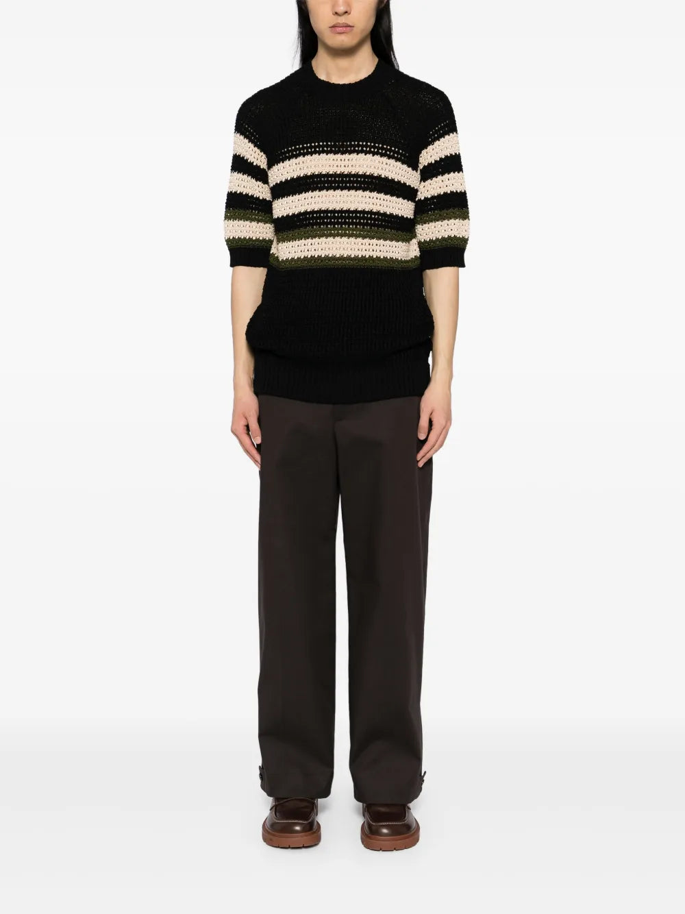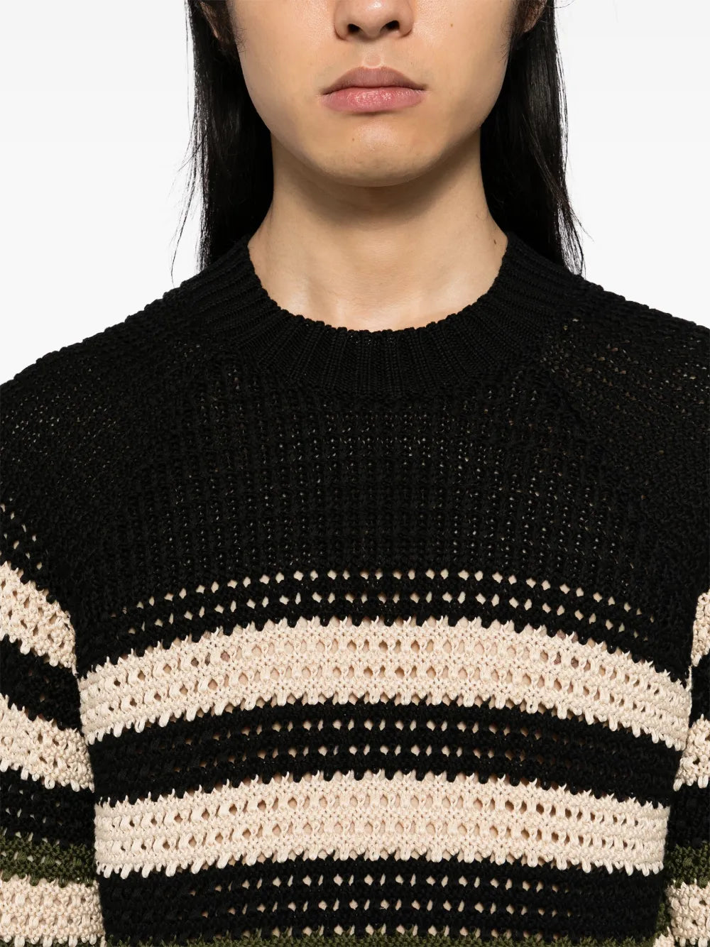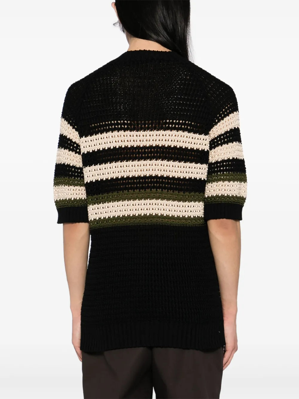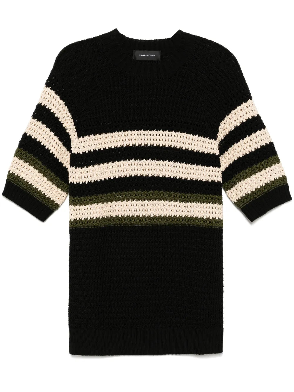 Our Striped Top combines a black/multicolour knitted construction with ribbed cuffs and hem for a comfortable fit. The colour-block design adds a touch of style to this versatile piece. Expertly crafted with high-quality materials, this top is both fashionable and durable, making it a must-have addition to any wardrobe.