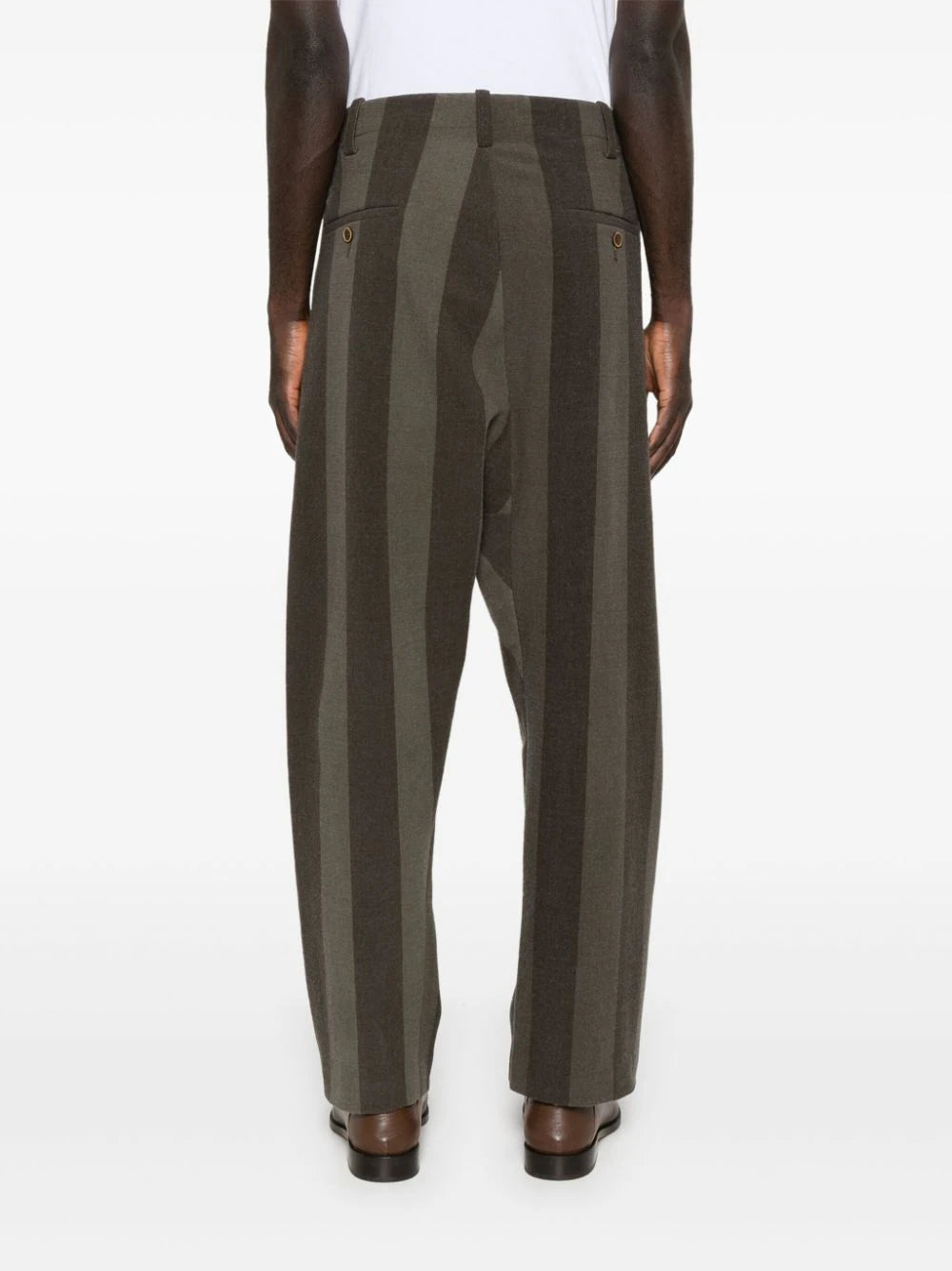 brown two-tone design virgin wool blend textured finish vertical stripe pattern belt loops two side welt pockets two rear button-fastening pockets tapered leg drawstring waist button fly fastening