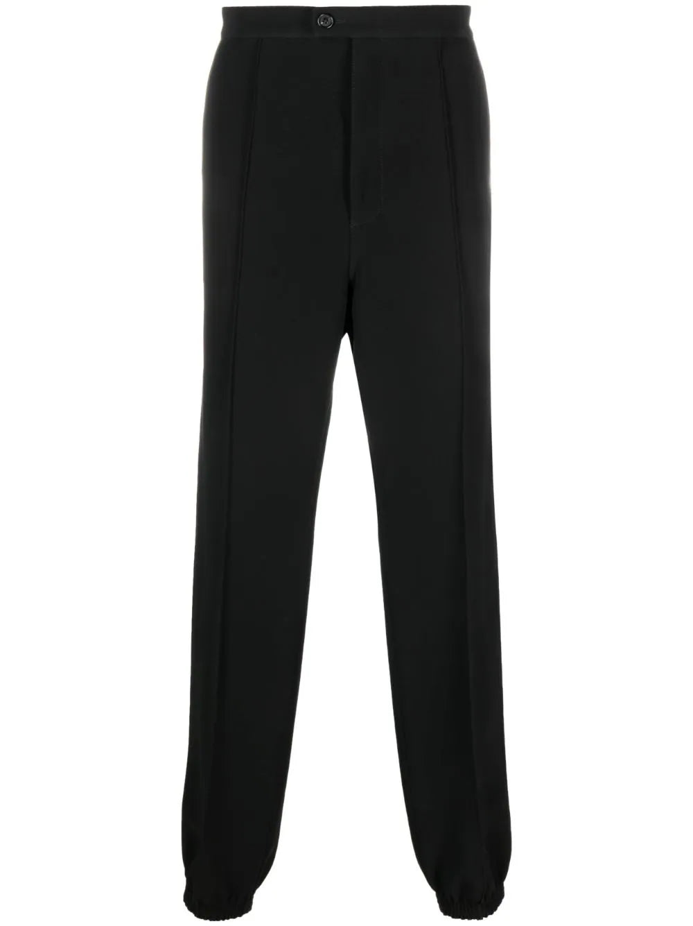 tailored track pants from Alexander McQueen featuring black, front button and zip fastening, belt loops, pleat detailing and elasticated cuffs.