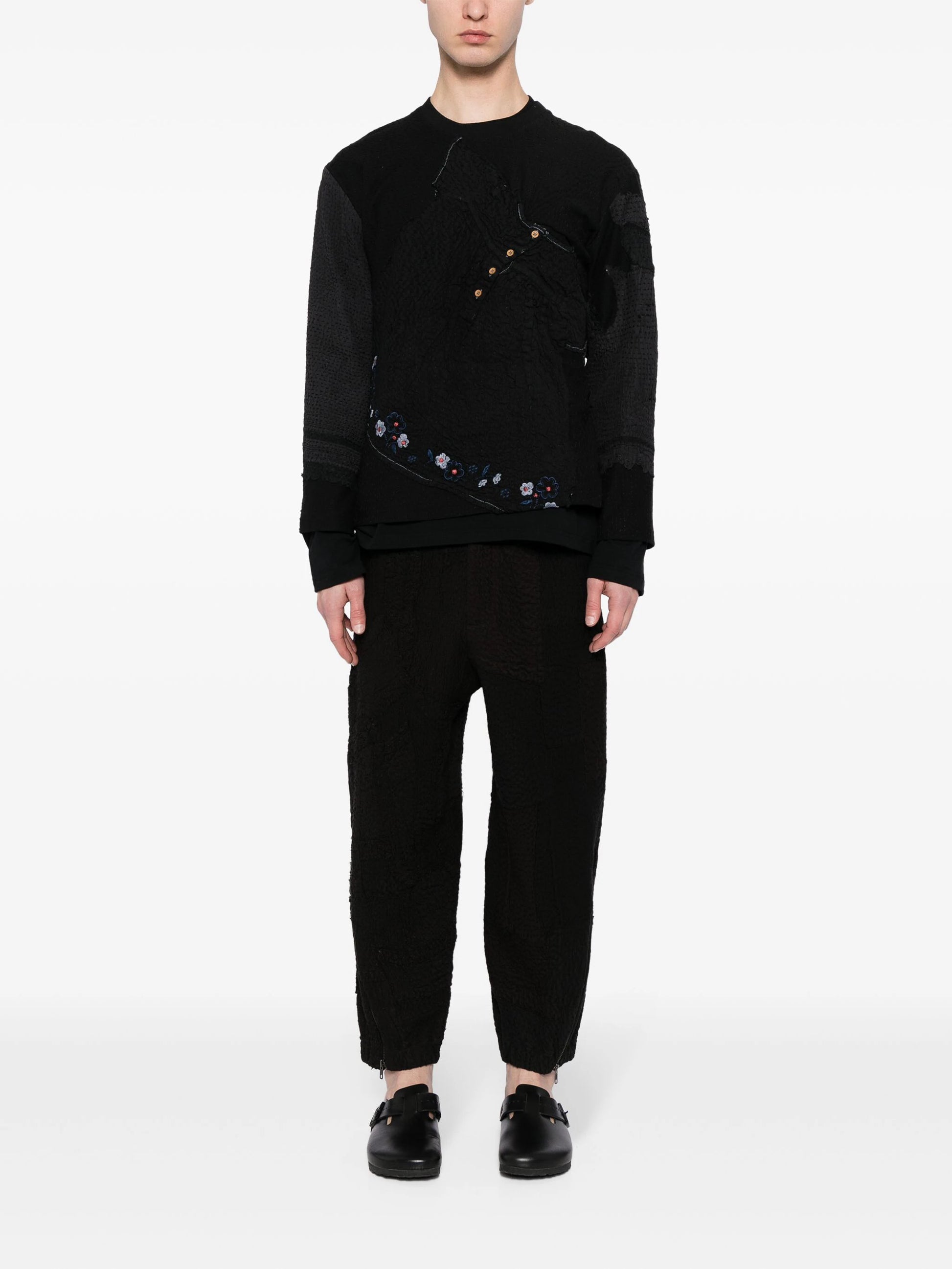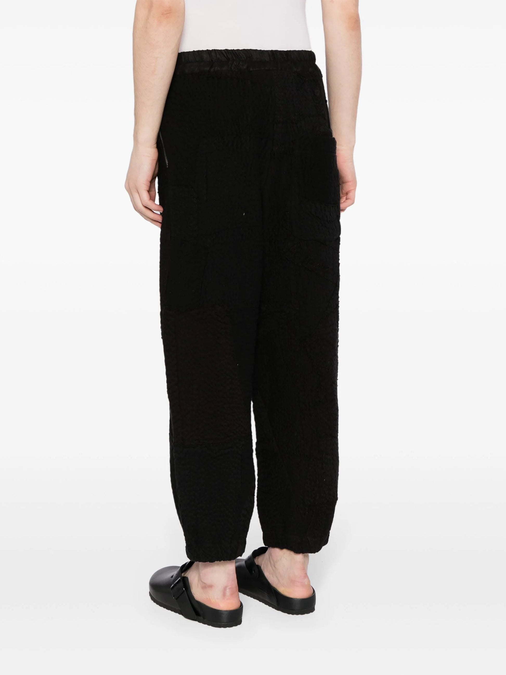 black cotton textured finish tapered leg elasticated waistband ankle zips