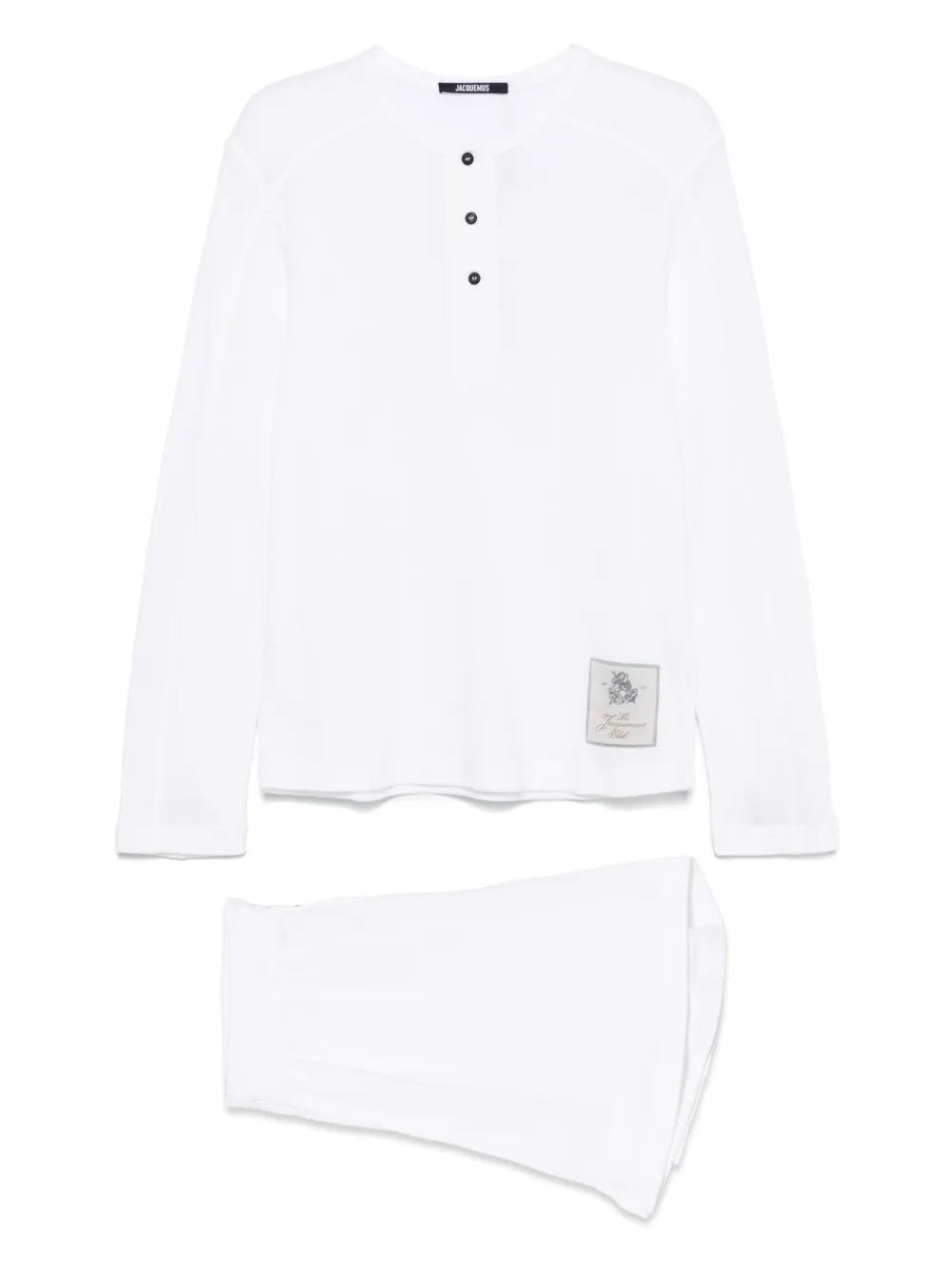 This set includes a white short with a front button fastening and an elasticated waistband. The logo patch on the front adds a touch of style. Perfect for everyday wear, this set is both comfortable and fashionable.
