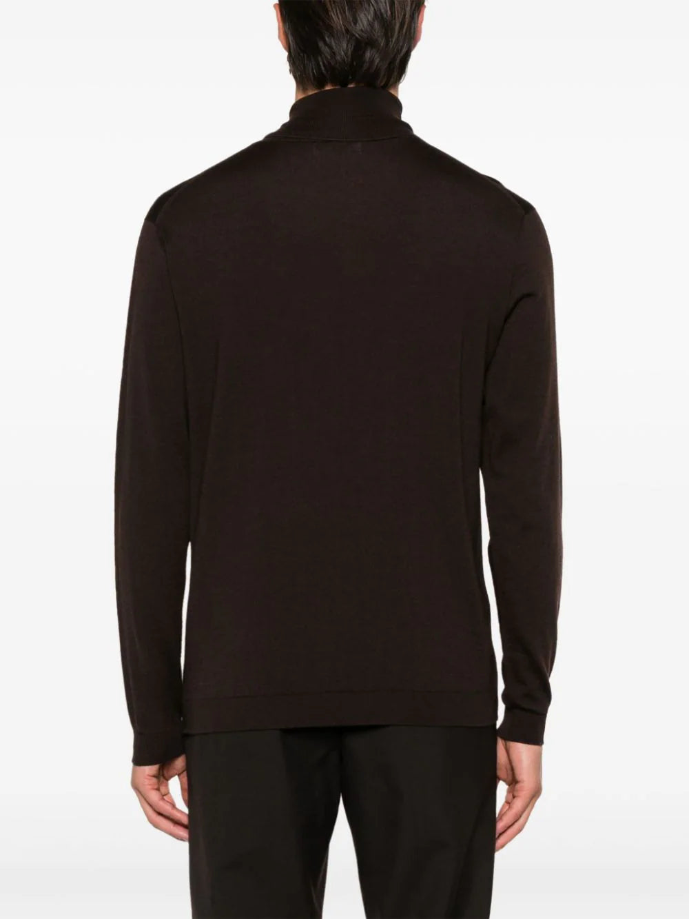 cedar brown wool-silk blend fine knit turtleneck long sleeves ribbed cuffs and hem