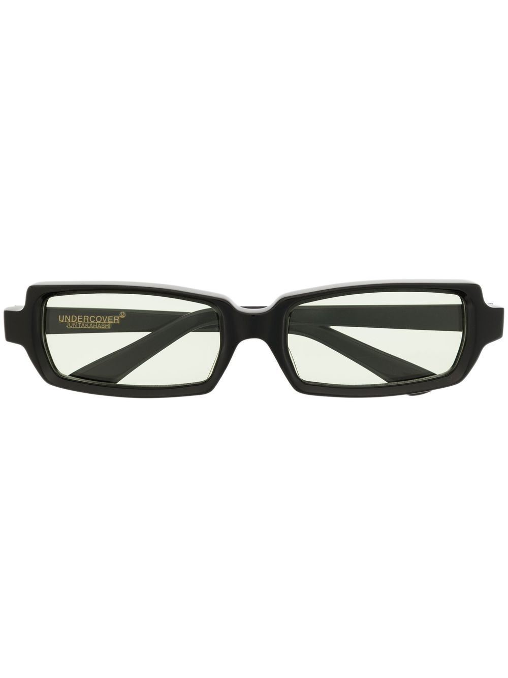 UC1B4E01 rectangle-frame sunglasses from Undercover featuring black, rectangle frame, tinted lenses, logo print at the arm and straight arms. These glasses come with a protective case.