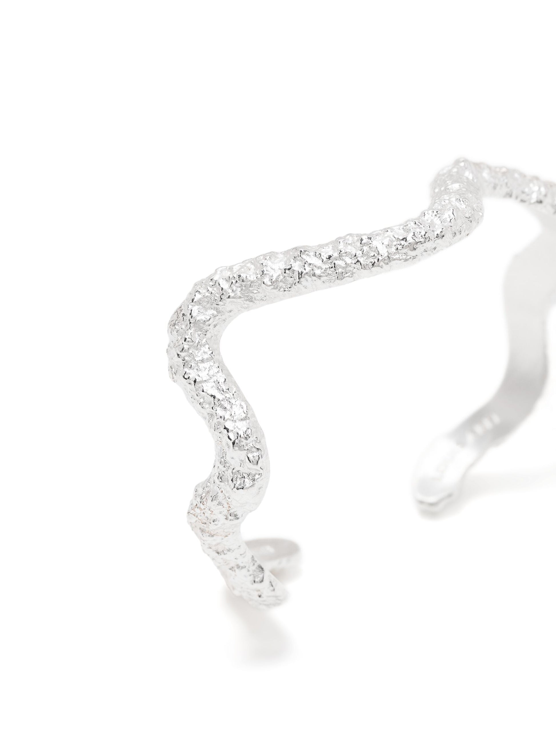 The Ventilo Bracelet boasts a refined silver-tone polish and a distinctive open cuff design. Designed with an eye for detail, its engraved logo exudes an air of elegance, making it the perfect statement piece to elevate any ensemble.
