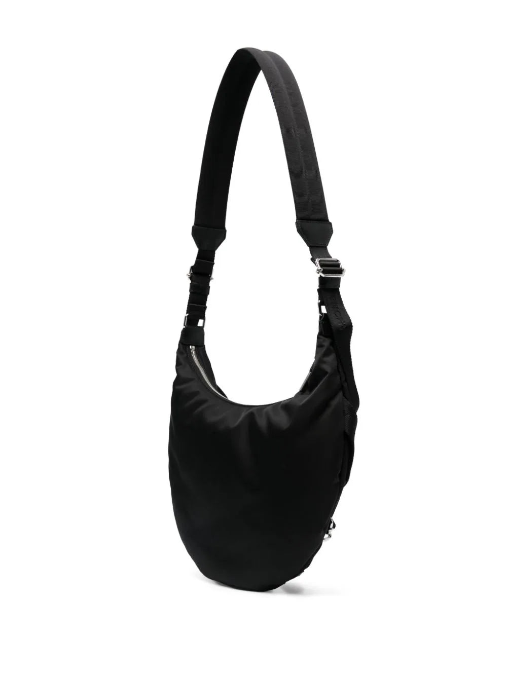 black silver-tone logo lettering decorative buckle detailing strap detailing D-ring findings branded zip puller adjustable shoulder strap full lining internal logo patch internal patch pocket main compartment logo-engraved silver-tone hardware top zip fastening This piece comes complete with a protective dust bag.