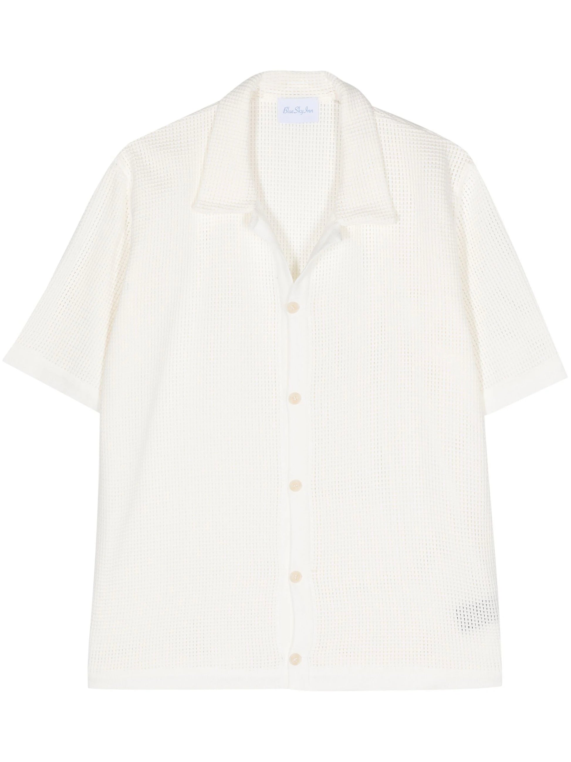 white cotton open-work dial Cuban collar short sleeves straight hem front button fastening