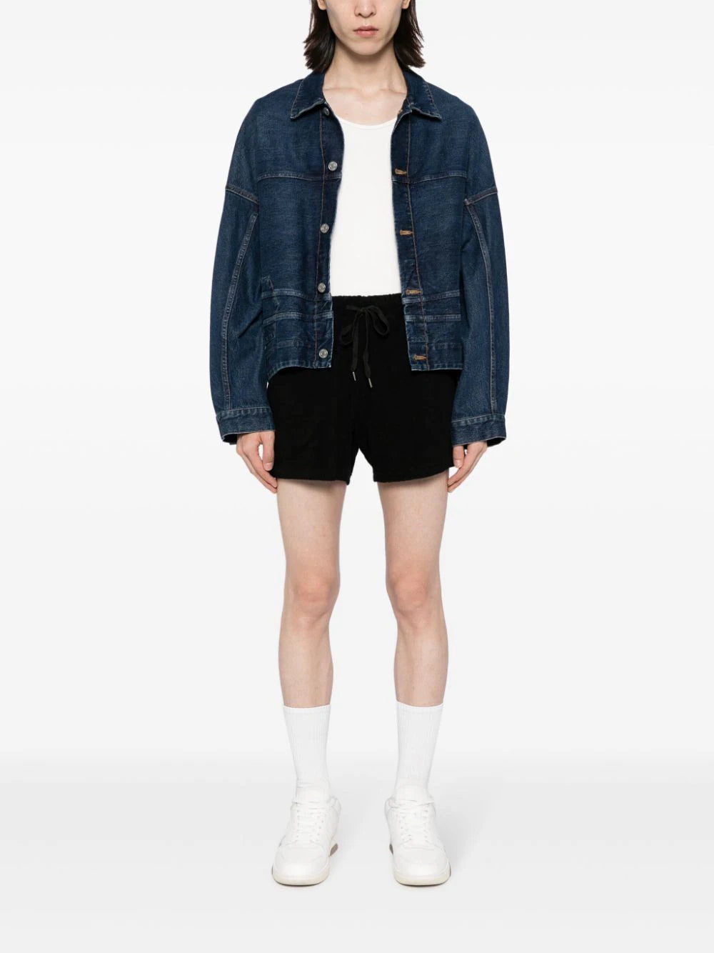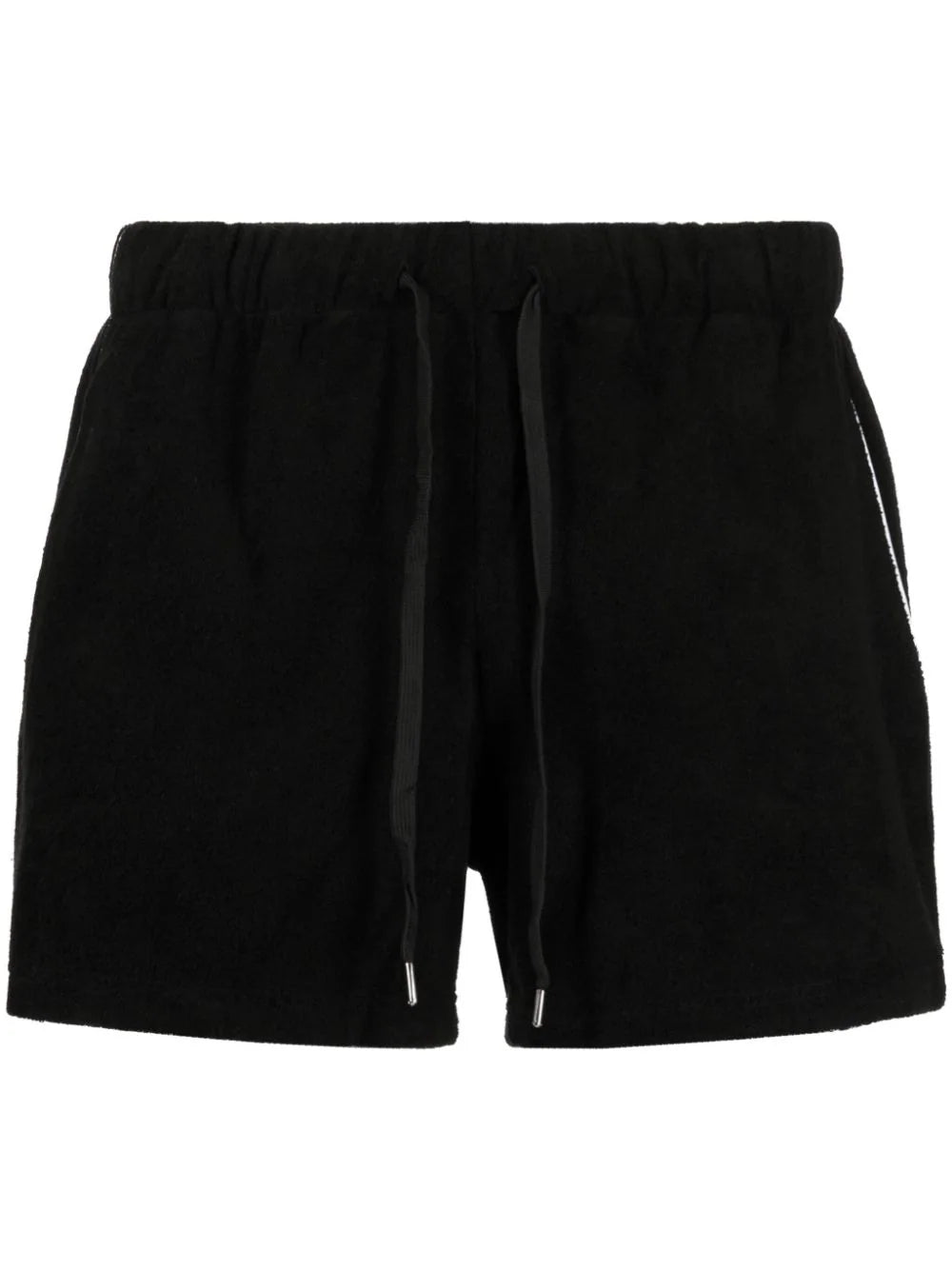 black organic cotton terry-cloth effect contrasting trim elasticated drawstring waistband two side inset pockets