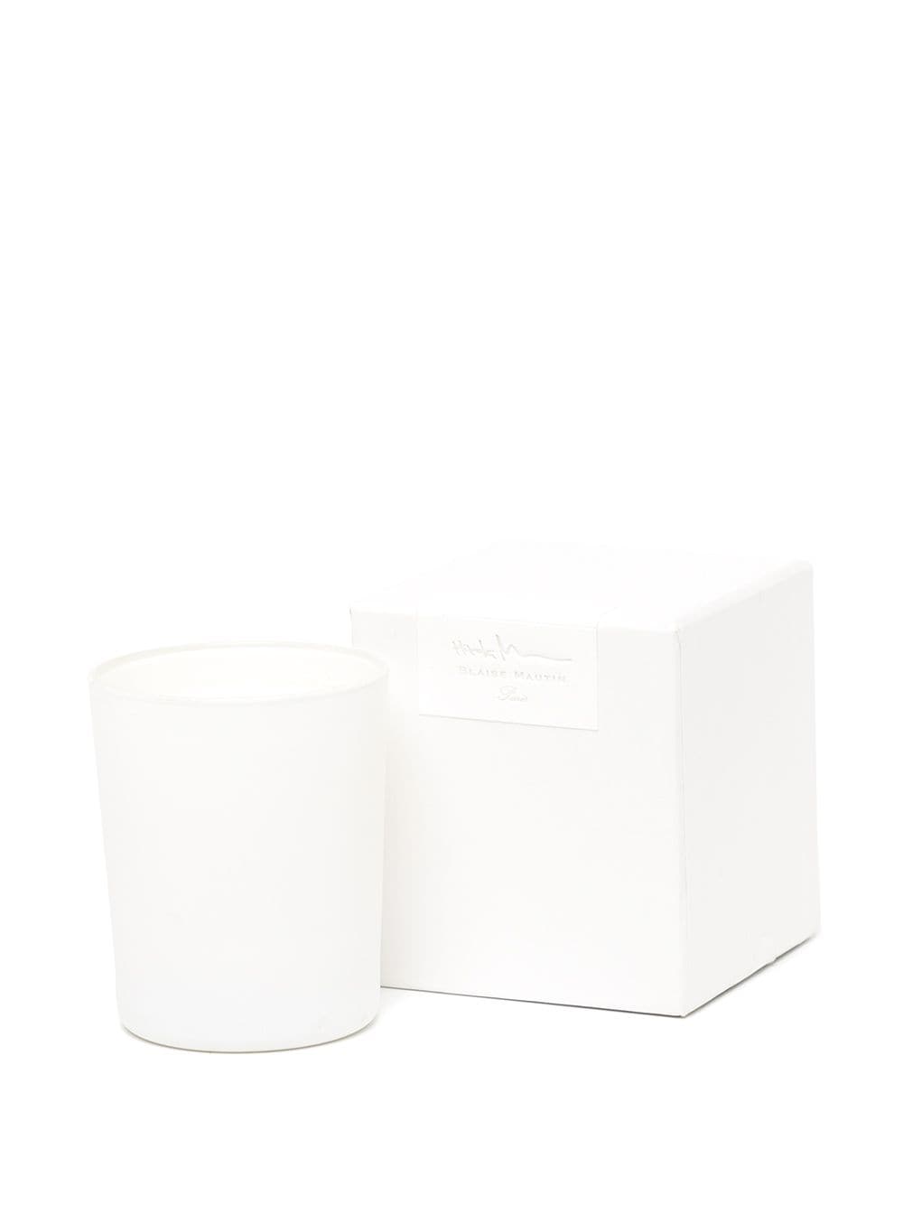 White x Blaise Mautin Kyoto candle from visvim featuring circular body, single cotton wick and byakudan sandalwood.