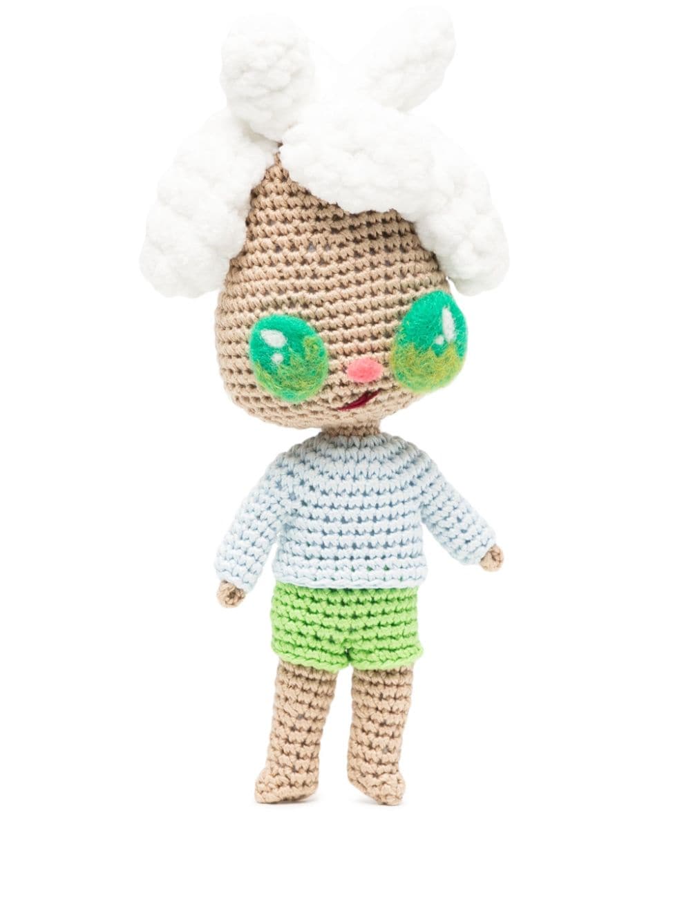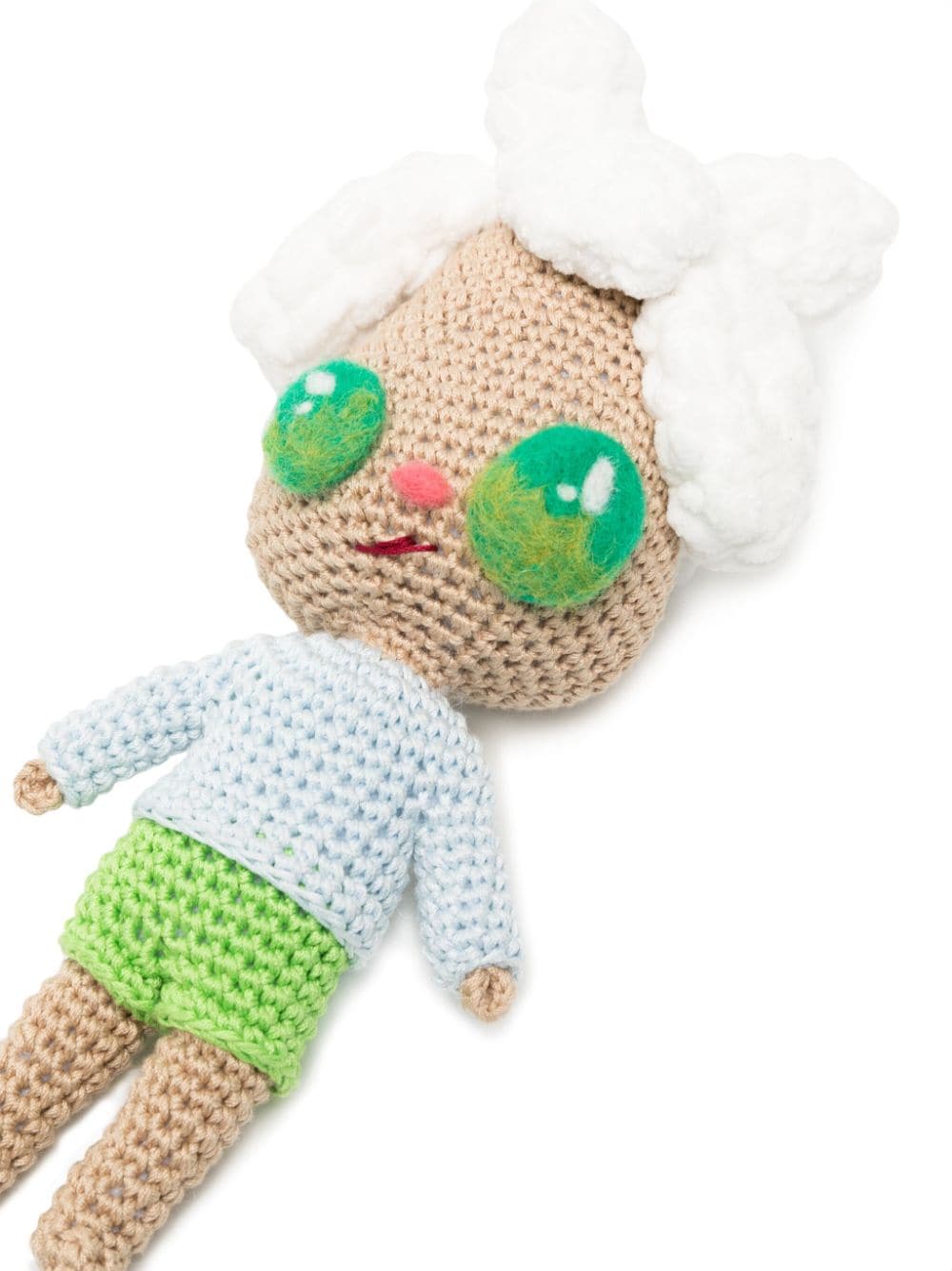 x Javier Calleja crochet-knit doll from MIRA MIKATI featuring apple green, multicolour, cotton blend, crochet knit, brushed effect and 3D-knit construction.