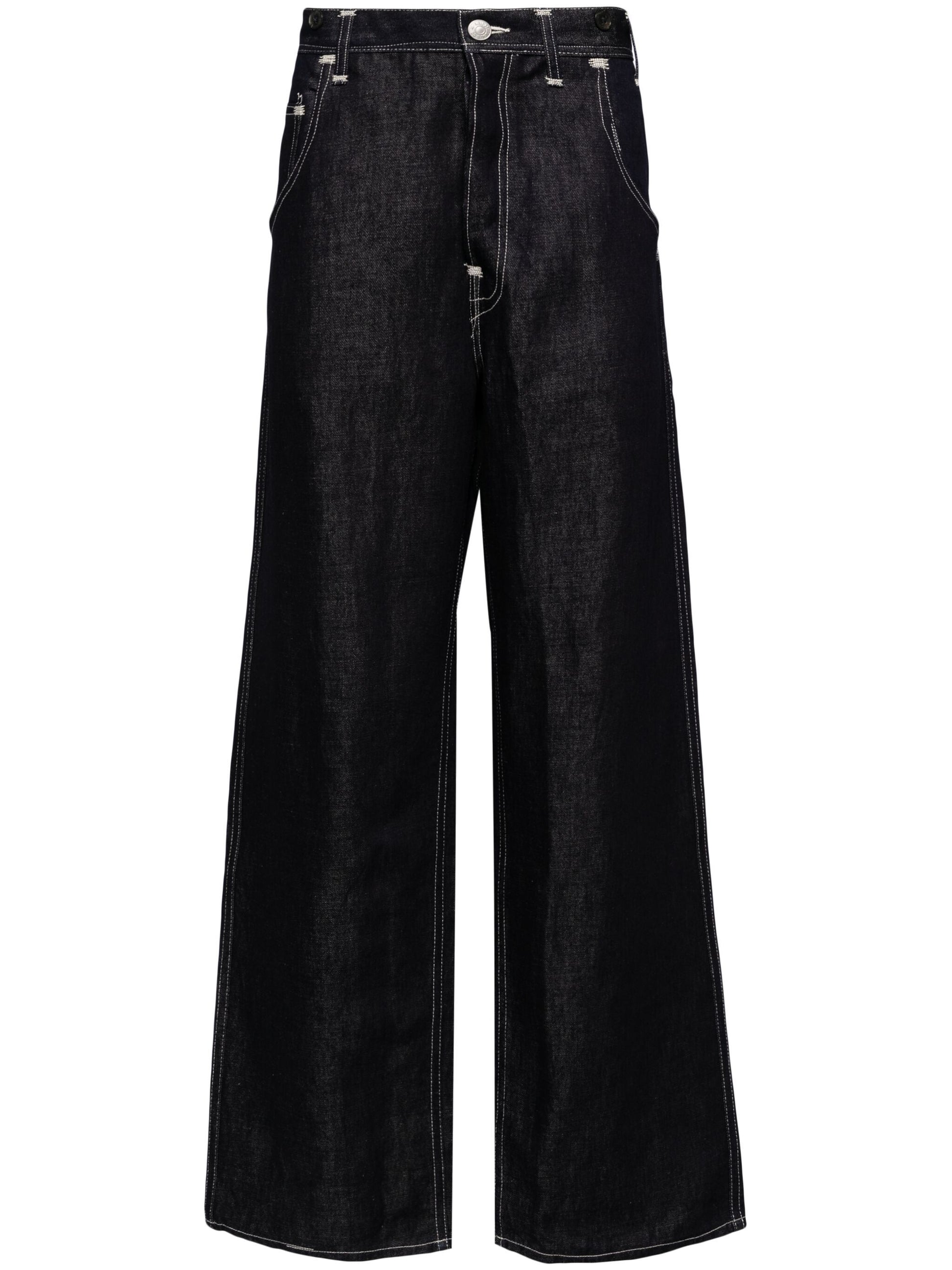 Upgrade your denim game with our Levis Wide-Leg Jeans. Made with a comfortable indigo blue cotton blend denim, these jeans feature front button fastening, belt loops, and contrast stitching. The classic five pockets provide ample space for your essentials, while the logo patch on the rear adds a touch of style. Complete your look with these must-have wide-leg jeans.
