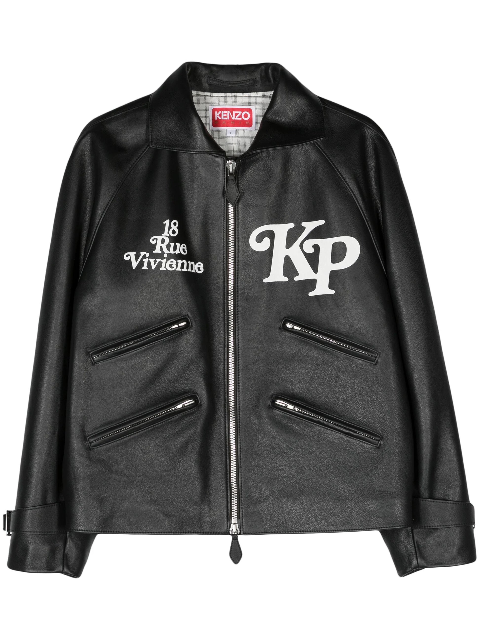 black/white calf leather grained texture logo print to the front and rear cutaway collar front two-way zip fastening long sleeves belted cuffs four front zip-fastening pockets internal zip-fastening pocket straight hem cotton lining When buying this unisex item, keep in mind that it is graded in standard men's sizing.