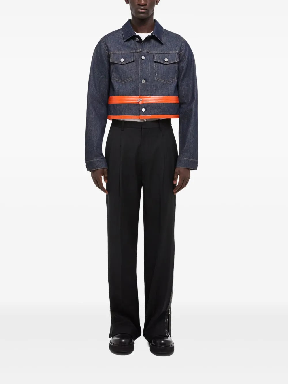 The Zip-Detail Denim Trucker Jacket is a versatile and stylish addition to any wardrobe. With its indigo blue color and all-around zip fastening, this jacket is both easy to wear and eye-catching. The detachable panels and two chest flap pockets add a practical touch to this fashionable piece. Perfect for any occasion, this jacket is a must-have for any fashion-forward individual.
