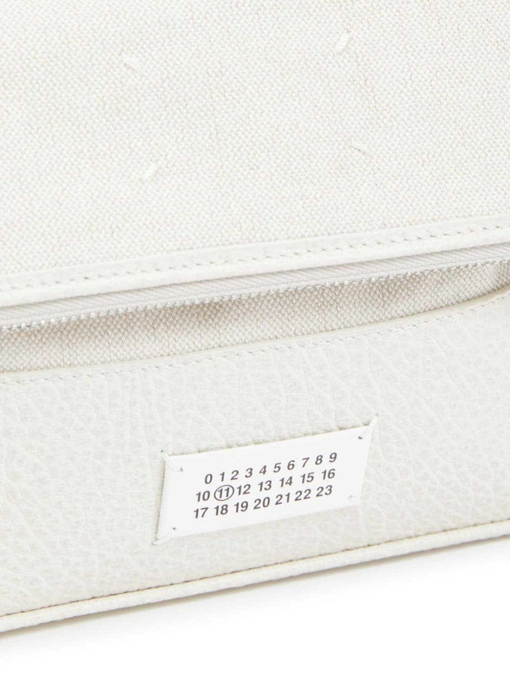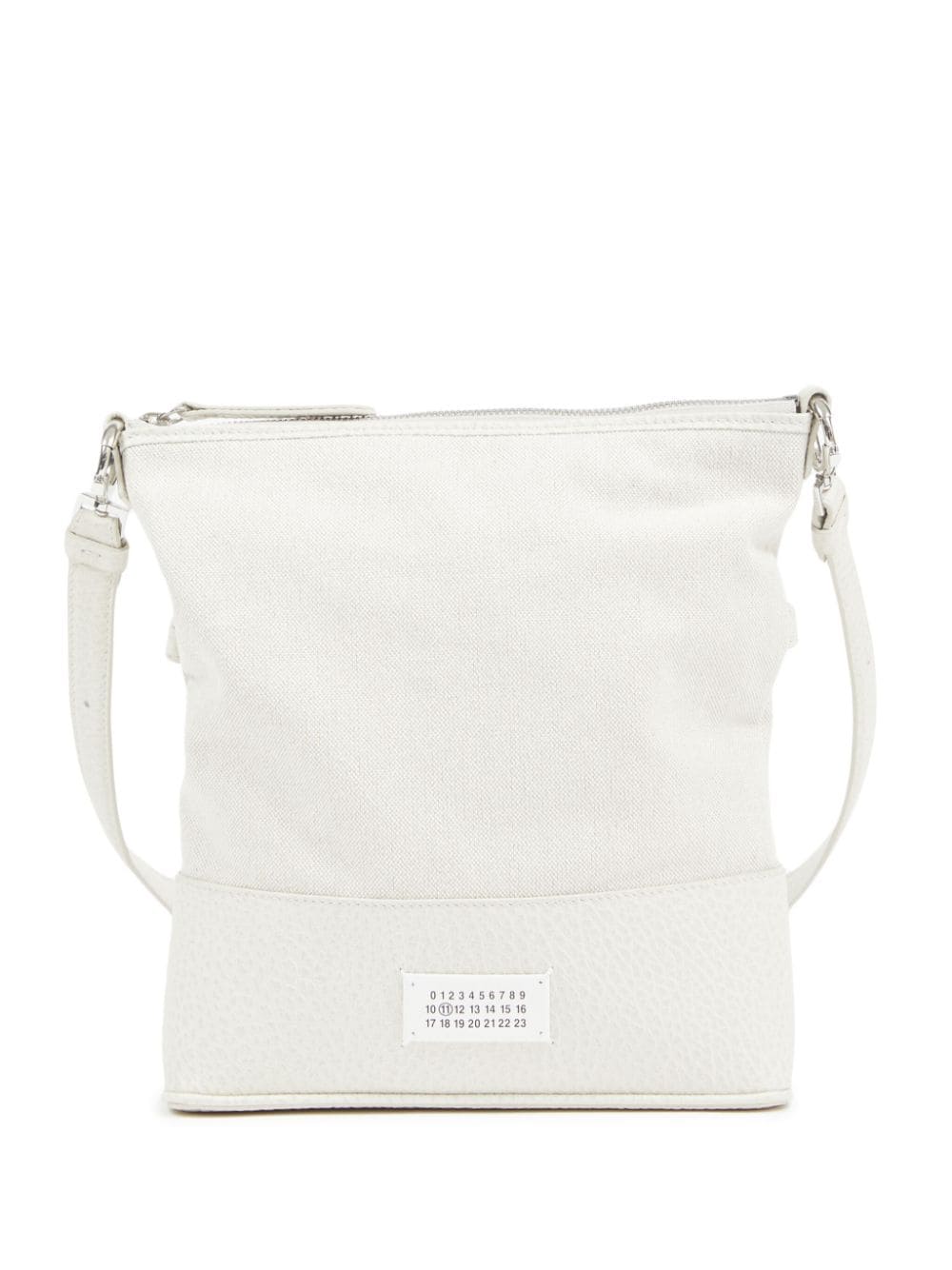 white cotton/calf leather logo patch to the front signature numbers motif signature four-stitch logo adjustable detachable shoulder strap foldover top top zip fastening main compartment main compartment internal slip pocket internal logo stamp cotton lining
