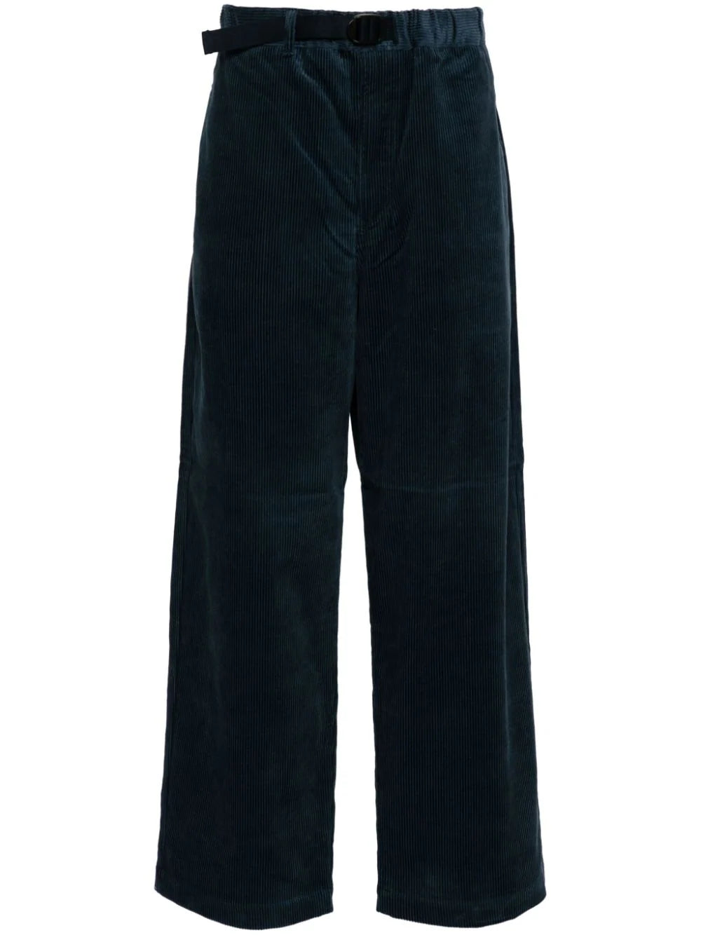 blue cotton corduroy straight leg elasticated waistband belt loops belted waist two rear patch pockets