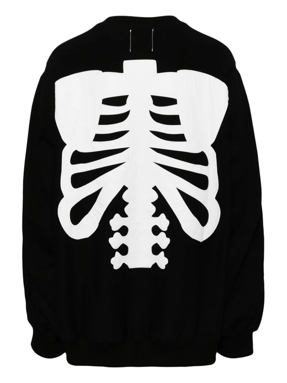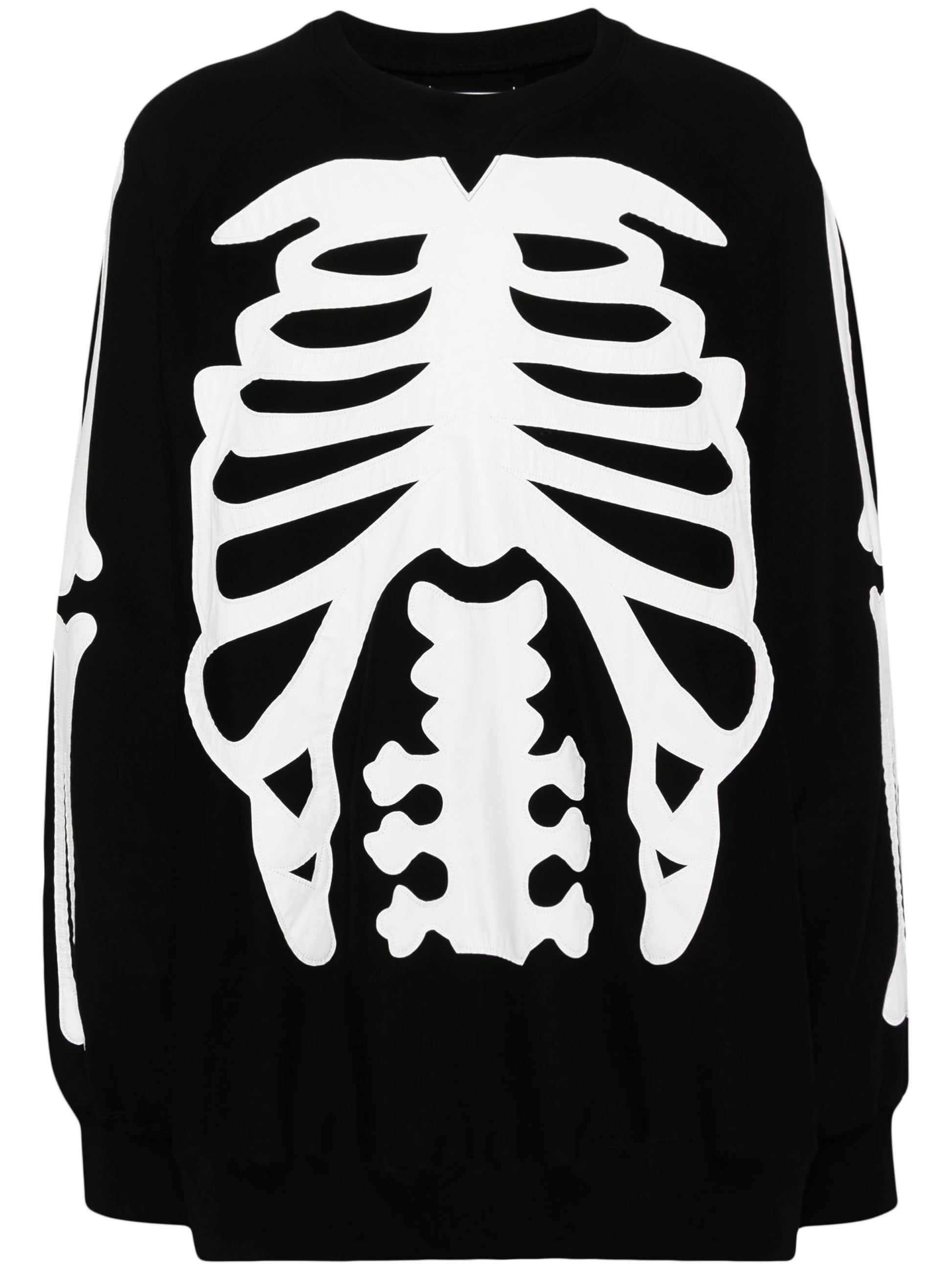 black/white cotton blend bone patch back gusset sleeves crew neck ribbed cuffs and hem