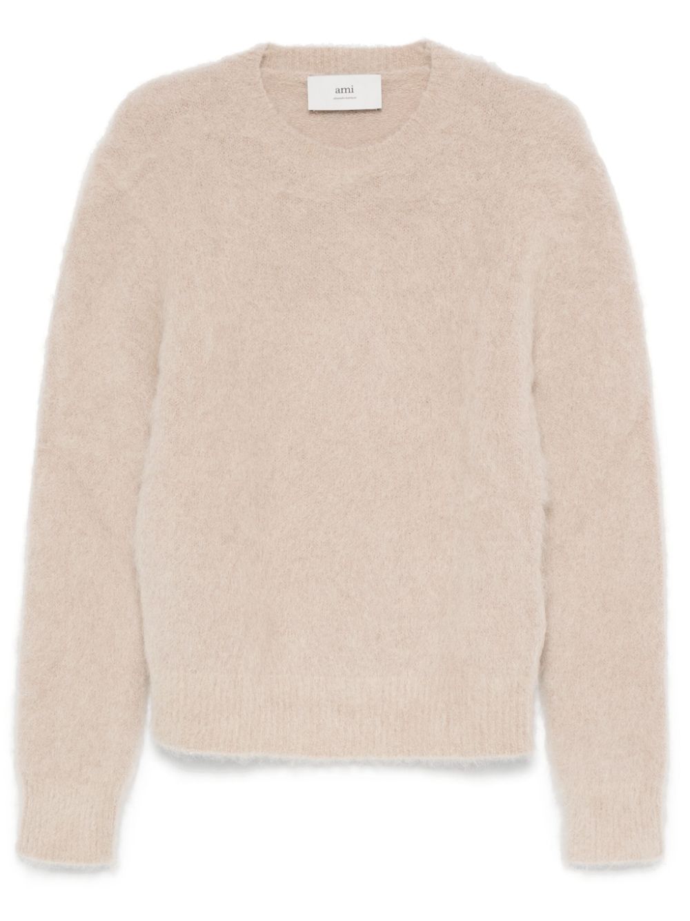 This light beige brushed jumper features a knitted construction, adding texture and warmth. The crew neck and long sleeves provide comfort, while the straight hem lends a classic look. Perfect for cold weather, this jumper is an ideal choice for a stylish and cozy outfit.