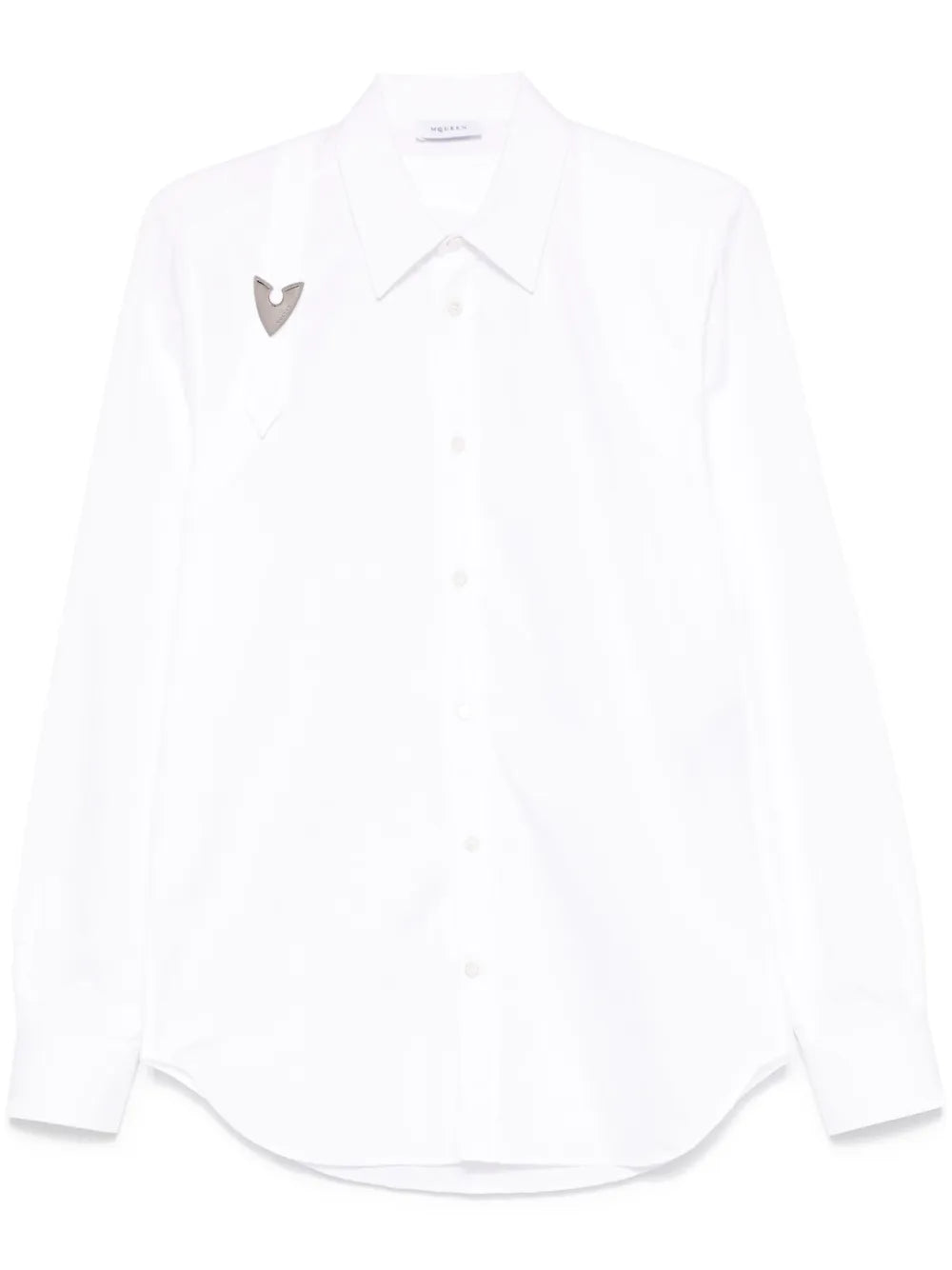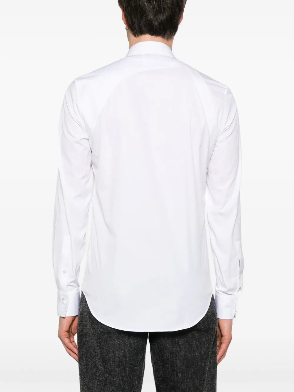 Introducing the Buckle Poplin Shirt: a timeless classic that combines a crisp, white front button fastening with buttoned-cuff sleeves. With its long sleeves and straight-point collar, this shirt exudes sophistication and elegance. Perfect for any occasion, it's a versatile addition to any wardrobe.