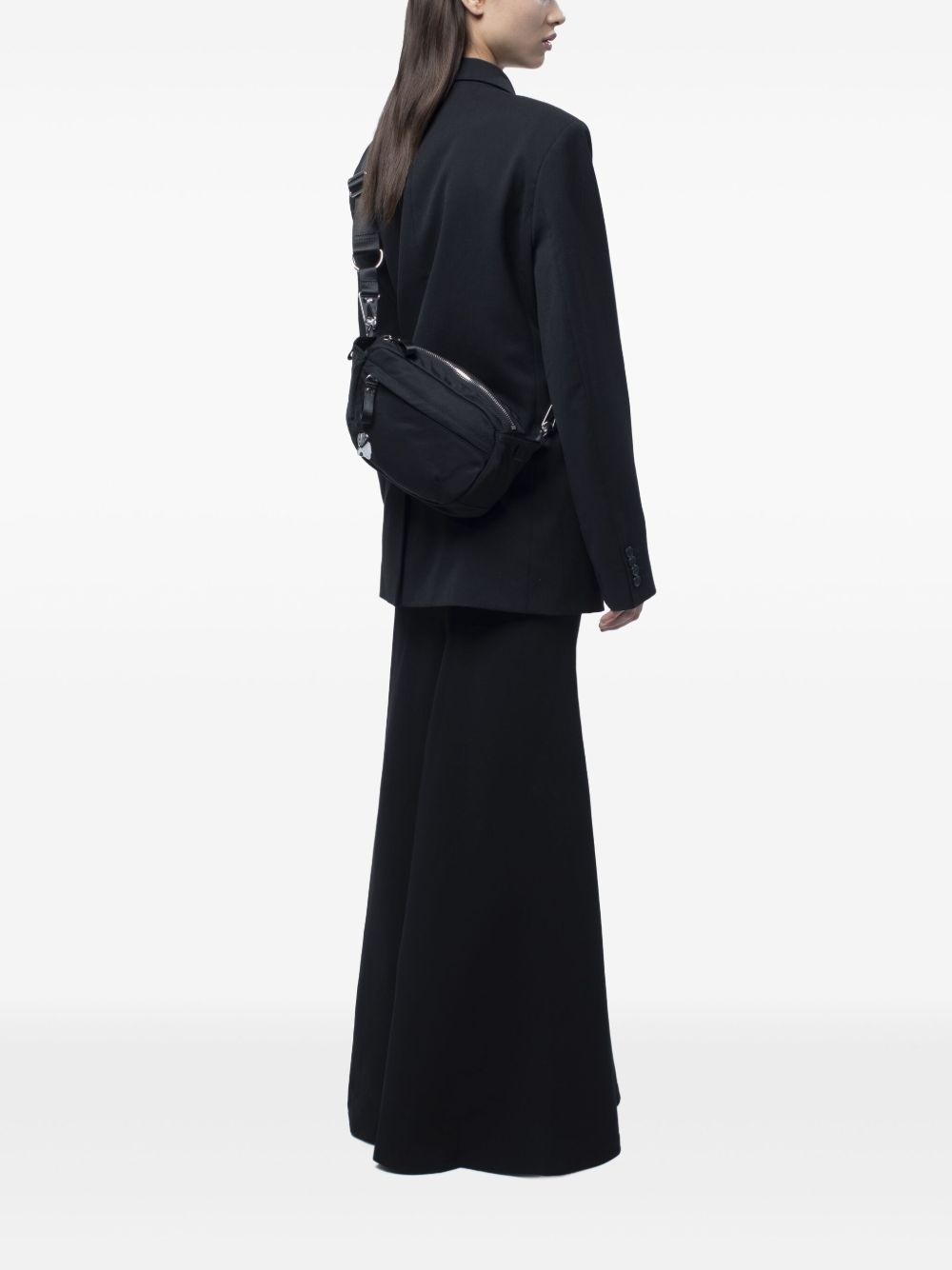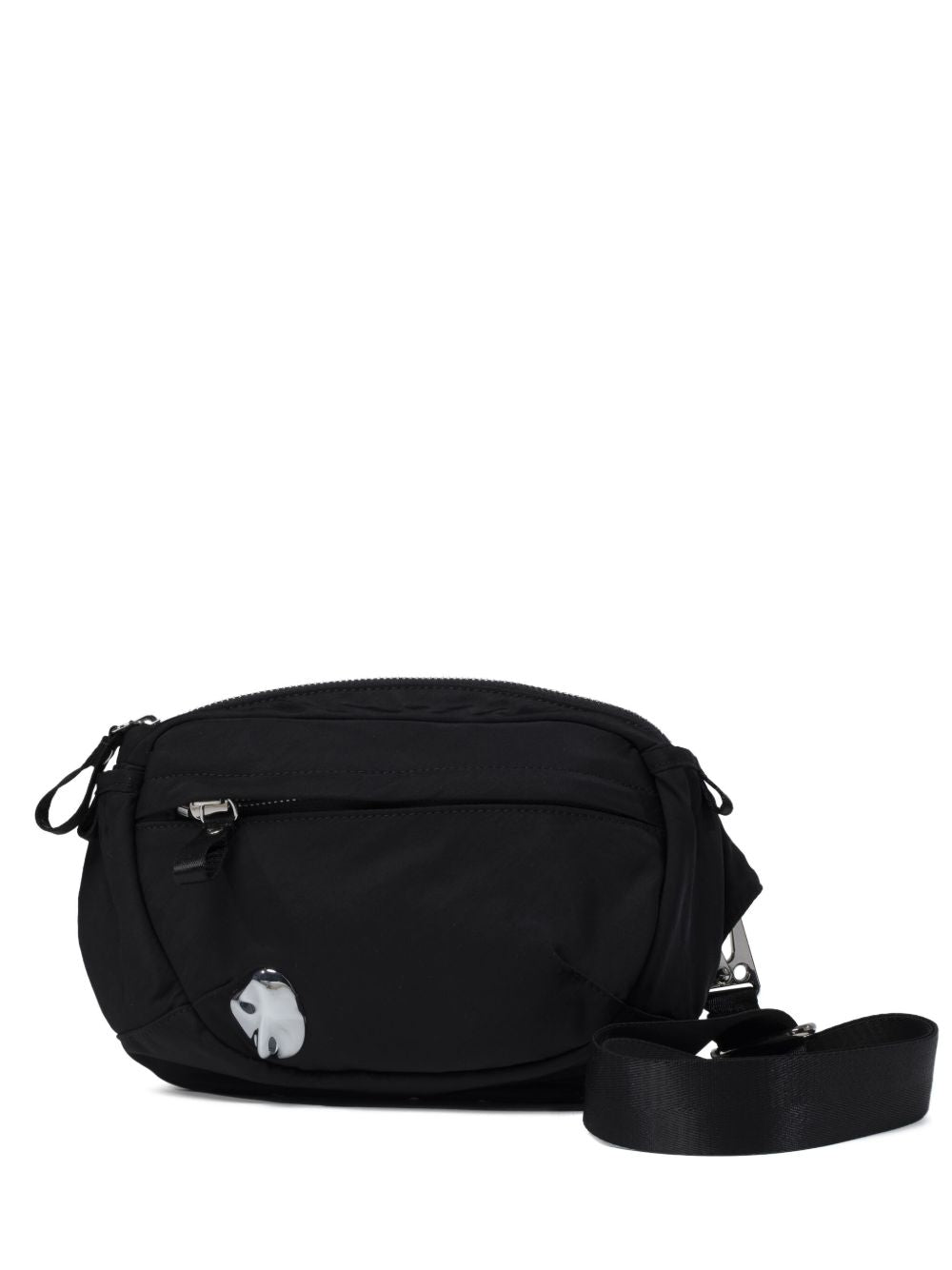Expertly designed with a black zip closure, an adjustable shoulder strap, and front zip pocket, this Charm-Detail Satchel Bag boasts silver-tone hardware and a logo charm detail. Instantly elevate your style and stay organized with this sleek and functional bag.