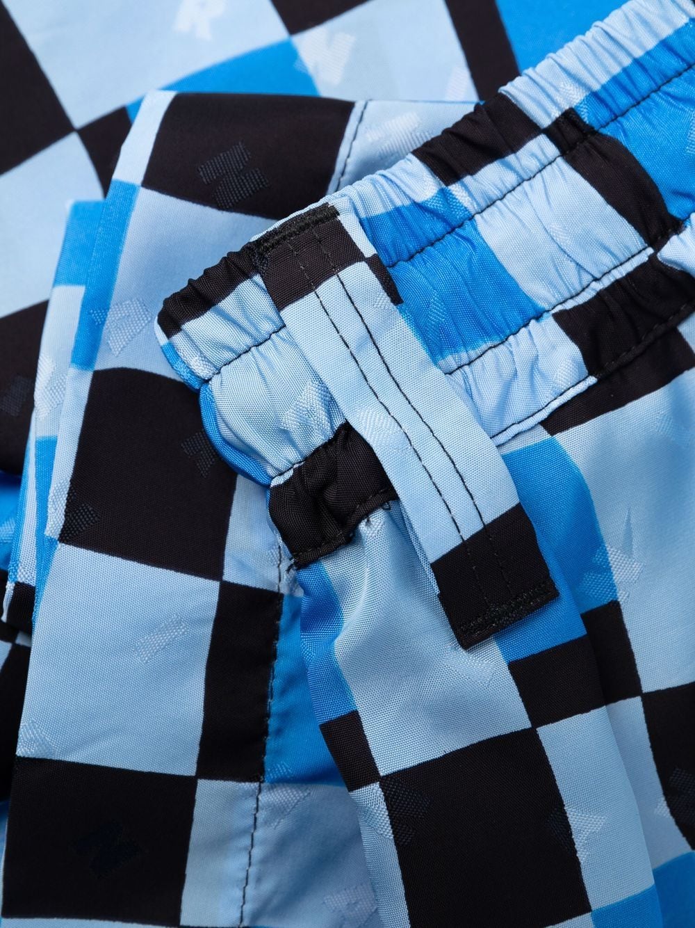Blue cotton checked knee-length shorts from MARNI featuring bold check print, knee-length, elasticated waistband and belt loops.