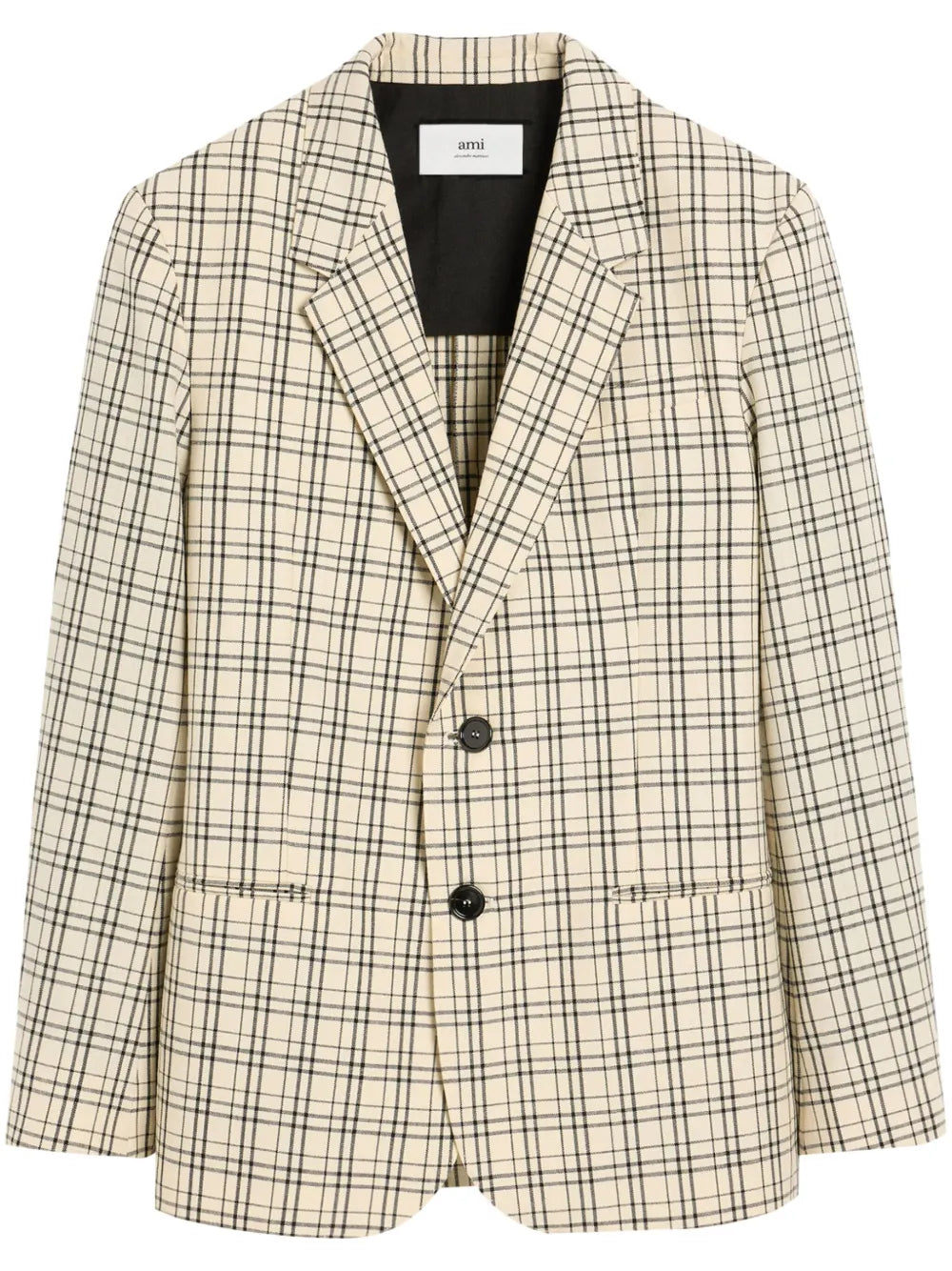Our Checkered Blazer is a timeless addition to any wardrobe. With its ivory white color and notched lapels, it exudes sophistication and style. The front button fastening and chest welt pocket provide convenience and the two front patch pockets add functionality. Elevate your look with this elegant blazer.