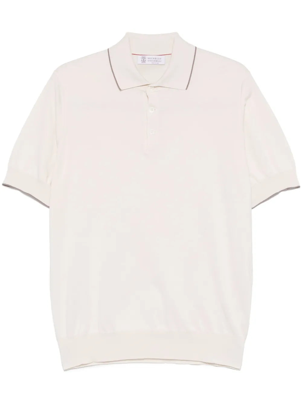 Expertly crafted with a light beige color and striking contrasting trim, our polo shirt is a stylish addition to any wardrobe. The short front button fastening, ribbed cuffs and hem, and short sleeves provide a polished look, perfect for any occasion. Upgrade your style with this versatile and comfortable shirt.