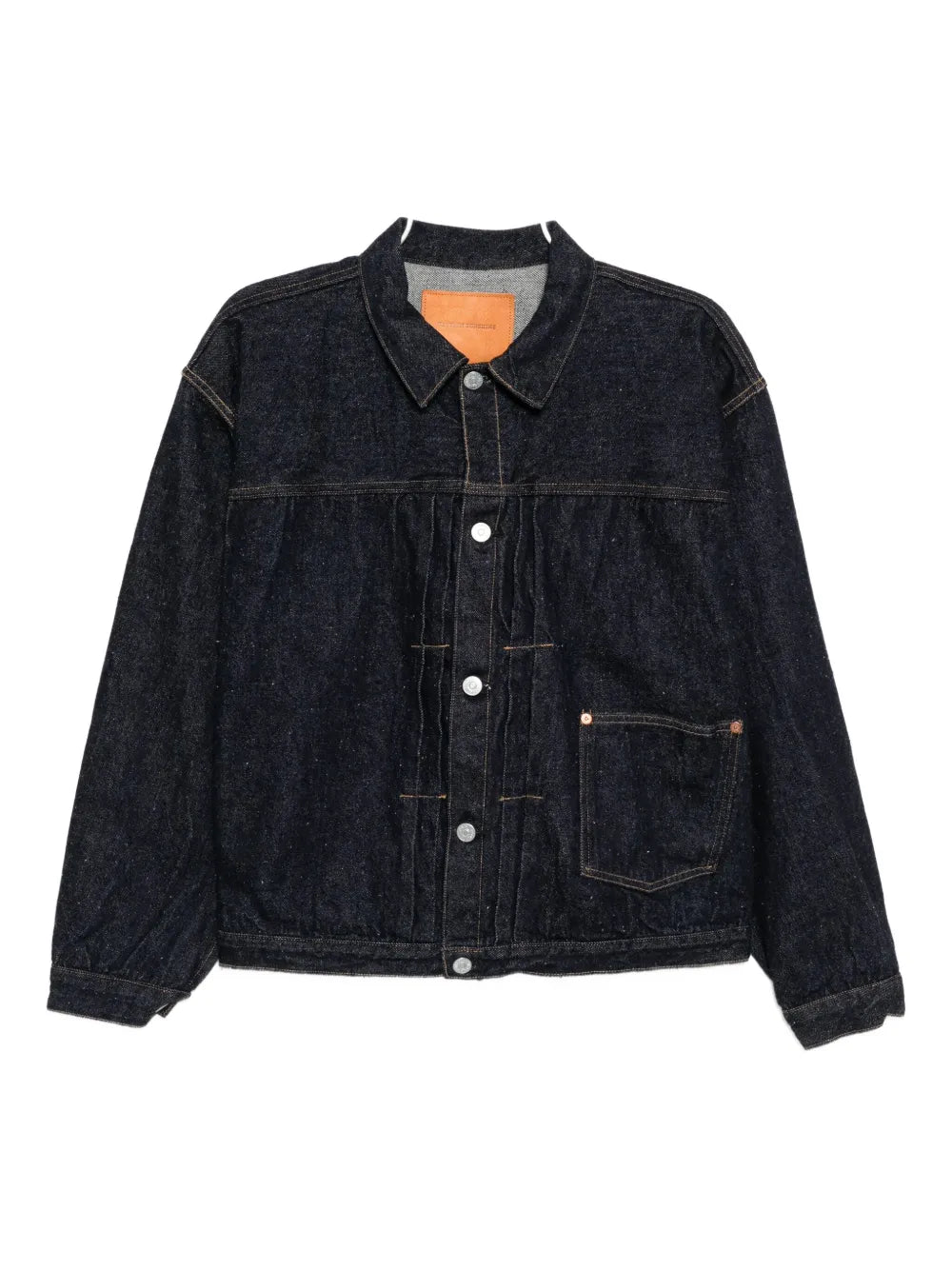 The Cotton Denim Jacket in indigo blue features a front button fastening for a classic, streamlined appearance. Designed with practical side patch pockets and buttoned-cuff sleeves, it combines functionality with timeless style, making it a versatile wardrobe staple for casual and layered looks.