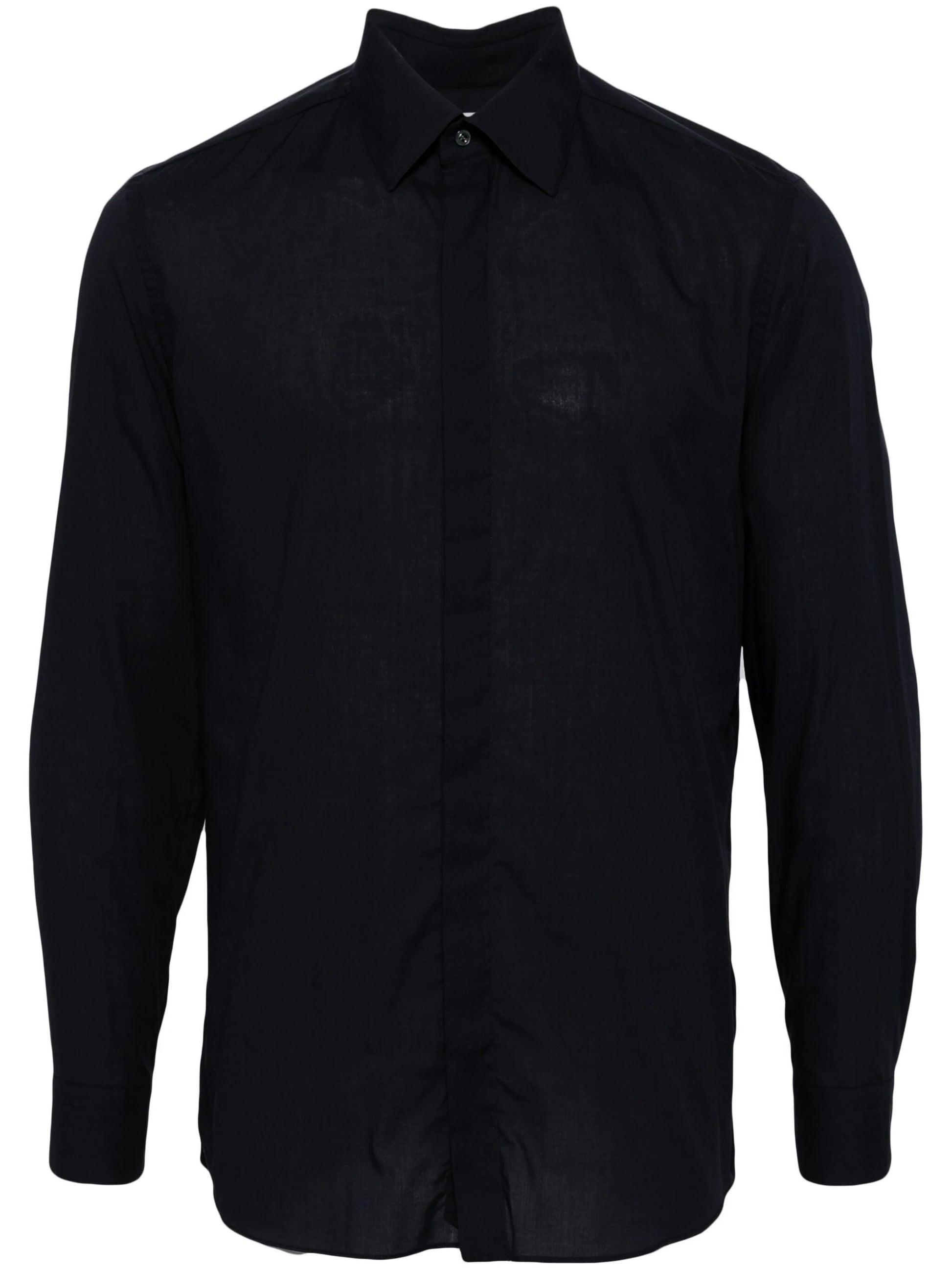navy blue cotton front button fastening long sleeves buttoned cuffs curved hem