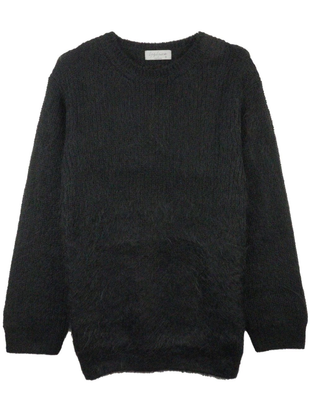 crew-neck brushed jumper from YOHJI YAMAMOTO featuring black, knitted construction, brushed effect, round neck, long sleeves and straight hem.