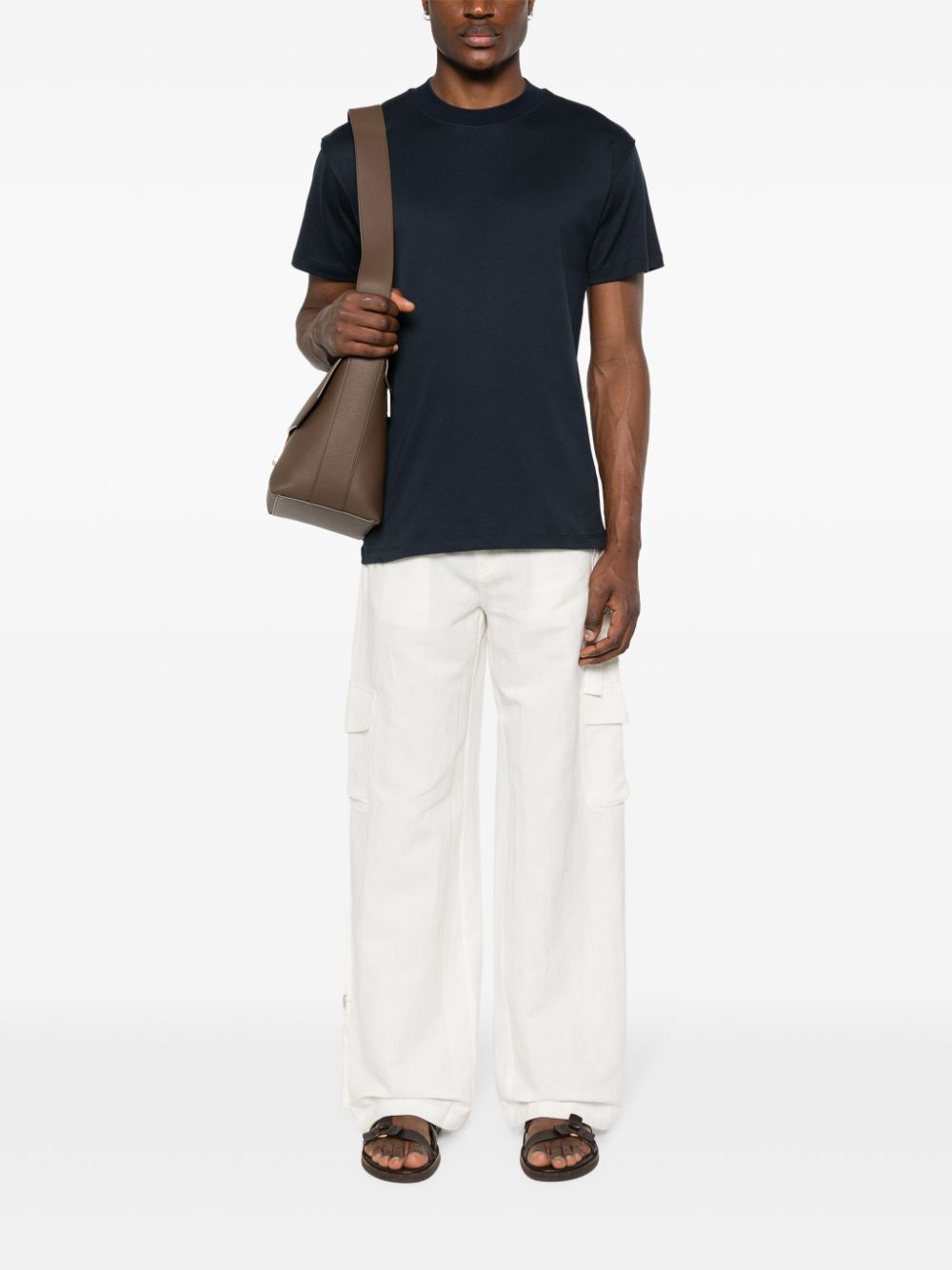 Introducing our Navy Blue Crew-Neck Cotton T-Shirt. Made with high-quality cotton jersey, it features a ribbed crew neck, short sleeves, and a straight hem for a comfortable fit. Perfect for casual wear, this T-shirt is a must-have for any wardrobe. Upgrade your style with our versatile and durable t-shirt.