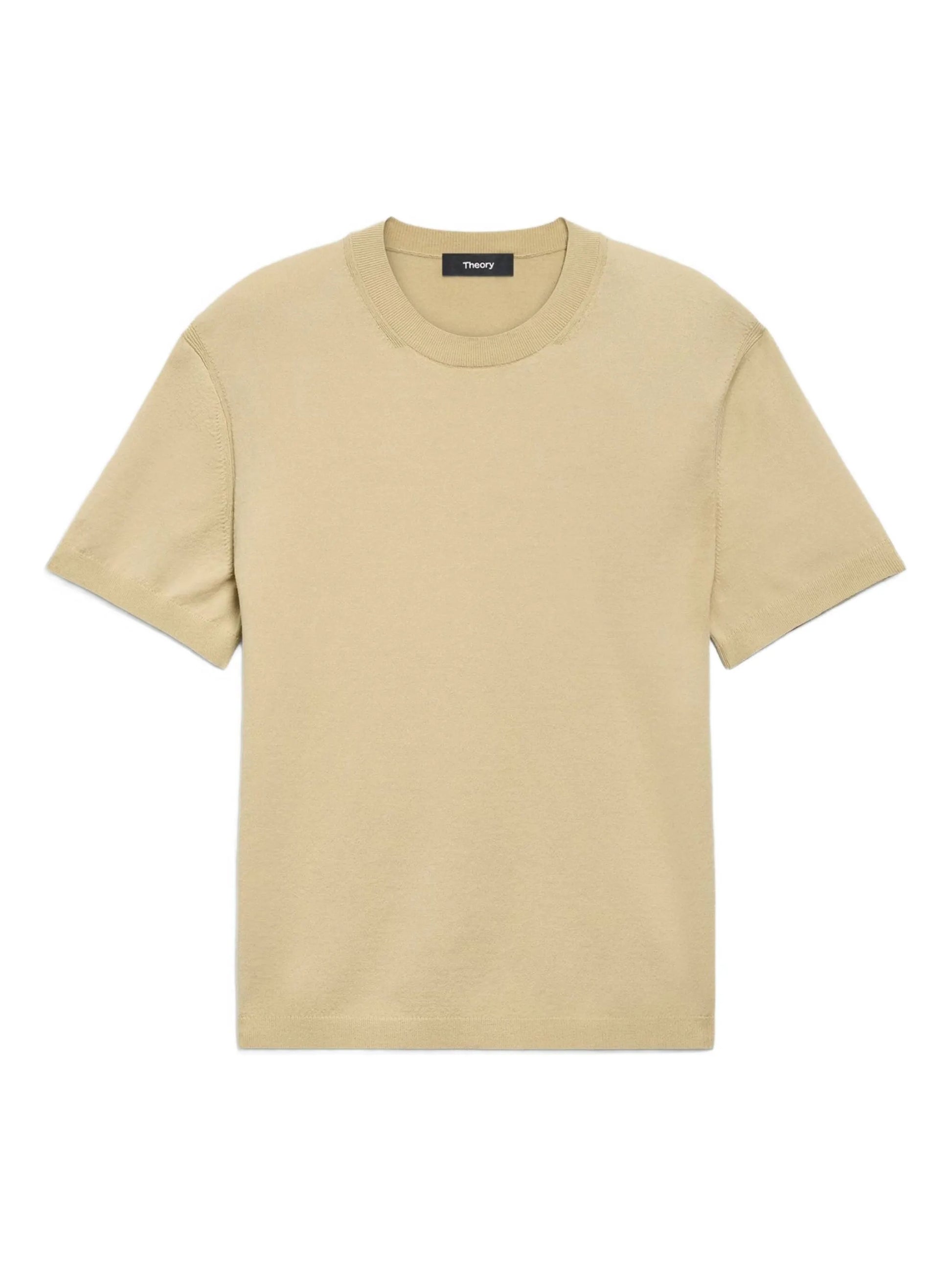 This beige crew-neck T-shirt offers a clean, versatile look with short sleeves and a ribbed hem for subtle texture and structure. Its classic design ensures comfortable wear and easy pairing with a variety of outfits, making it a foundational piece for any wardrobe.