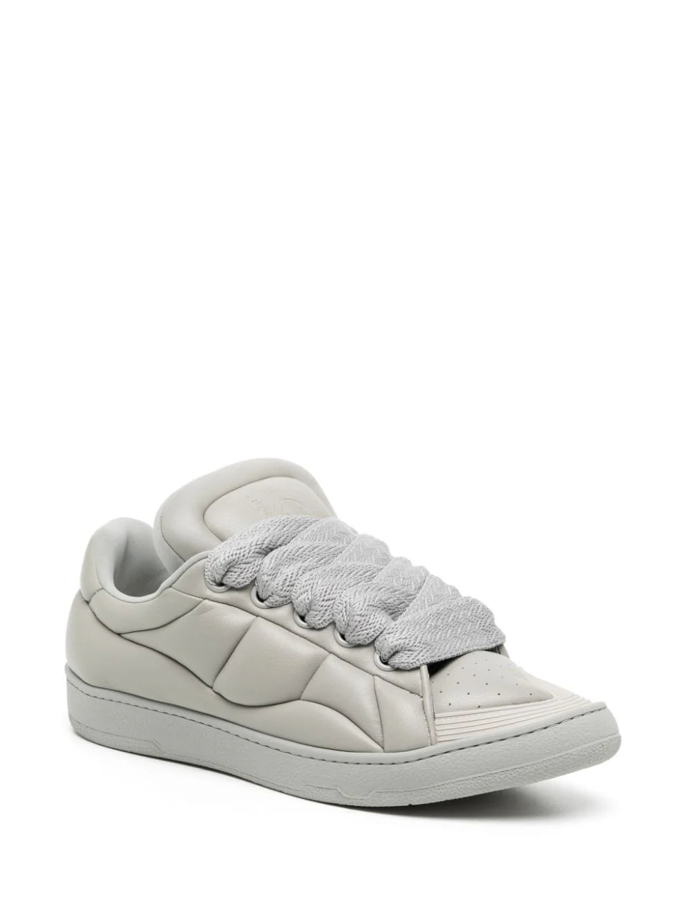 Curb XL leather sneakers from Lanvin featuring light grey, lambskin, padded design, perforated detailing, logo-debossed tongue, round toe, front lace-up fastening, branded insole and flat rubber sole.