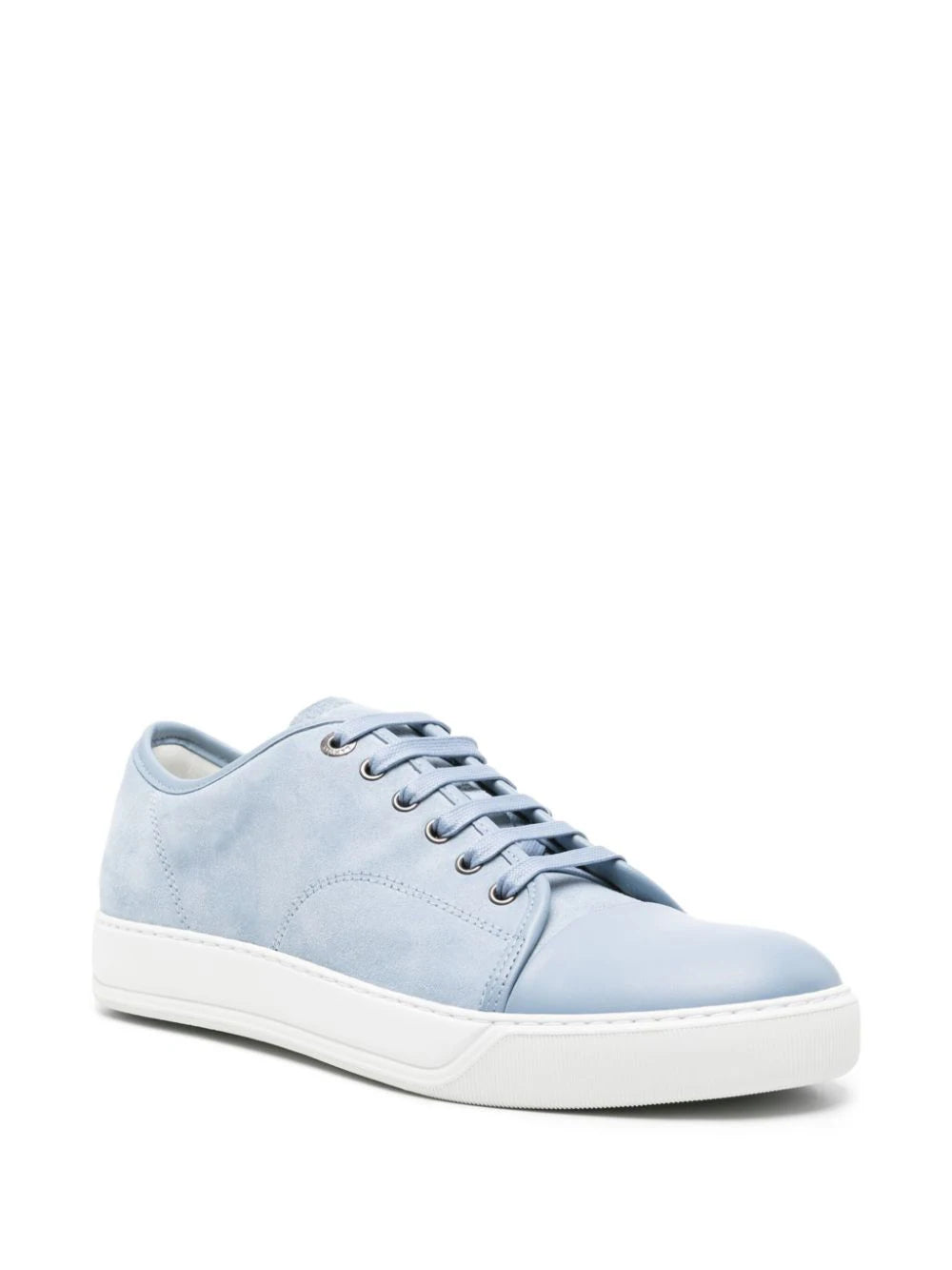 cornflower blue/white calf suede/calf leather metal eyelet detailing round toe front lace-up fastening leather lining branded insole flat rubber sole