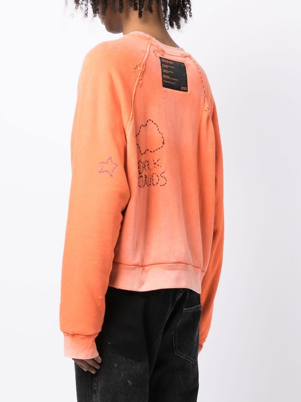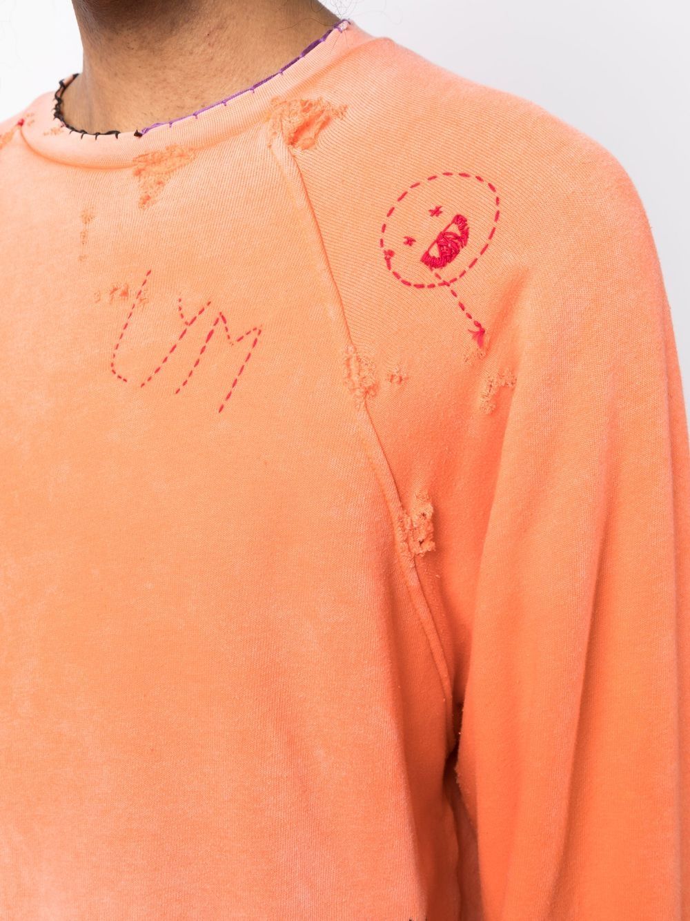 distressed-effect embroidered sweatshirt from Liberal Youth Ministry featuring orange, cotton blend, gradient effect, embroidered design, distressed finish, crew neck, long sleeves and elasticated trim.
