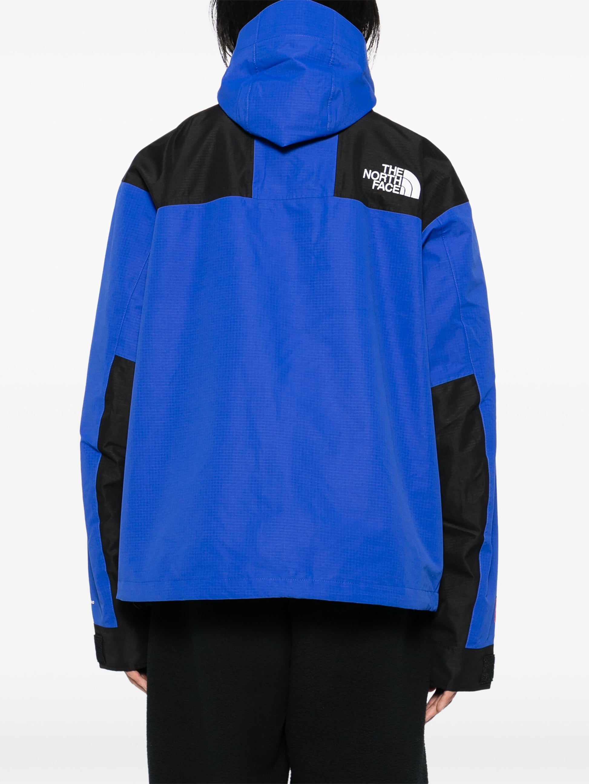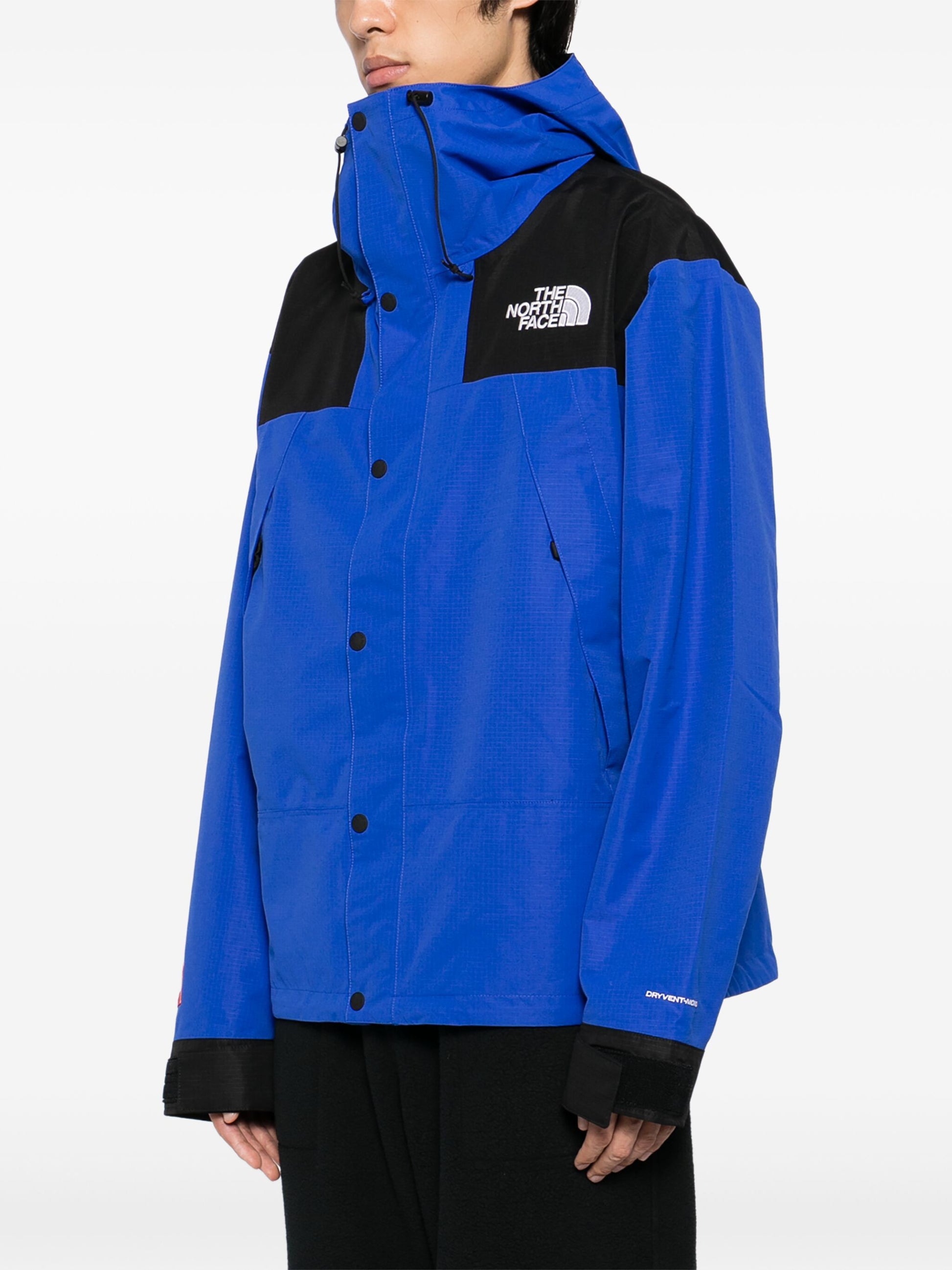 The Dryvent-Mono Mountain Jacket features a sleek black and blue design with a press-stud and zip fastening panel for added comfort. The drawstring hood, embroidered logo, and zip-fastening pockets provide both style and practicality. With long sleeves and magnetic-fastening cuffs, this jacket is suitable for any outdoor adventure.
