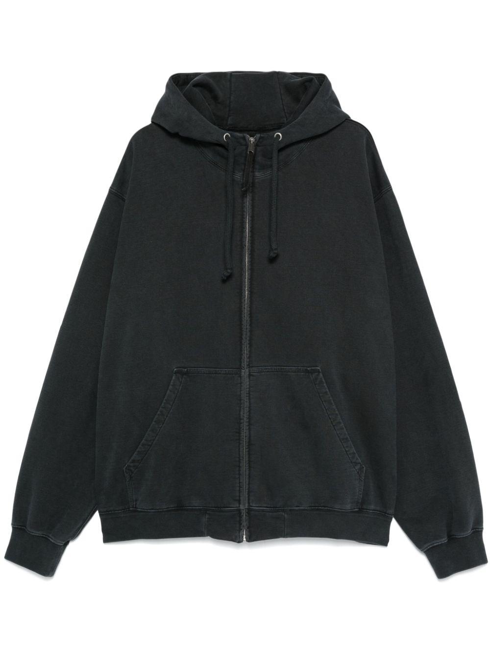 The Embroidered Logo Hoodie is the perfect combination of style and comfort. Made from medium grey cotton jersey, this hoodie features a front zip fastening, slouchy drawstring hood, and drop shoulder design. The ribbed cuffs and hem provide a cozy fit, while the two front pouch pockets offer convenience. The signature four-stitch logo and numbers motif add a touch of unique style. Stay warm and stylish with this French terry lined hoodie.