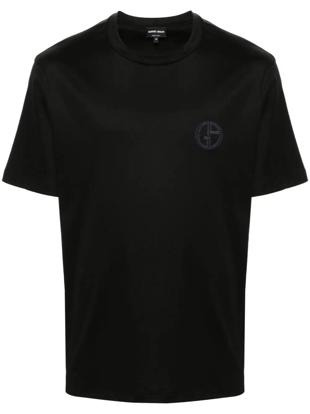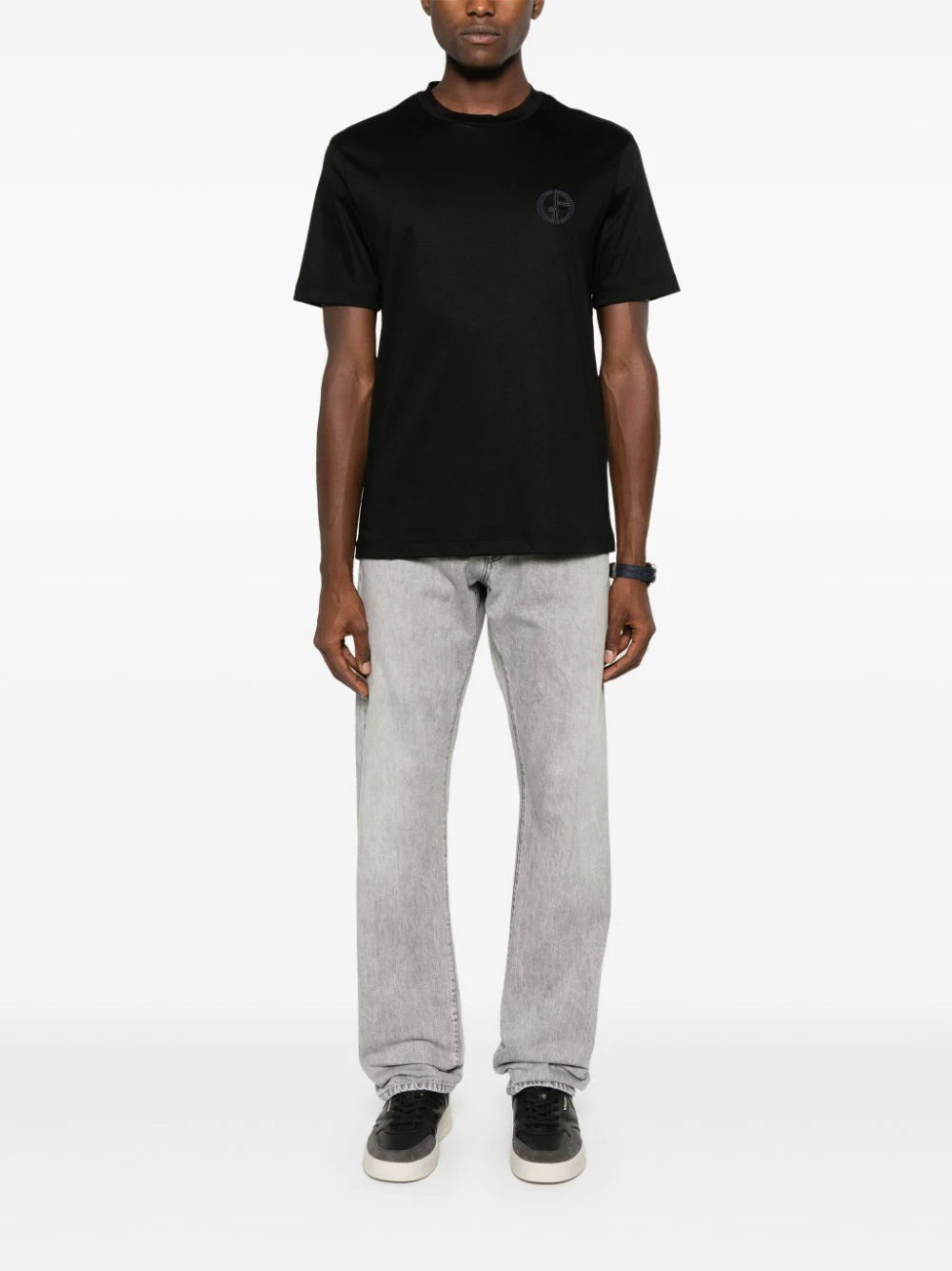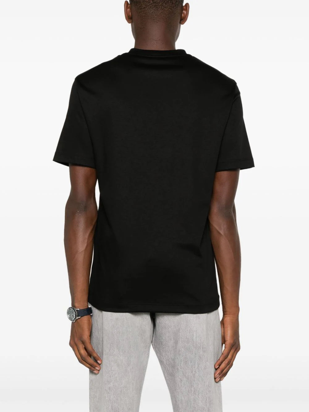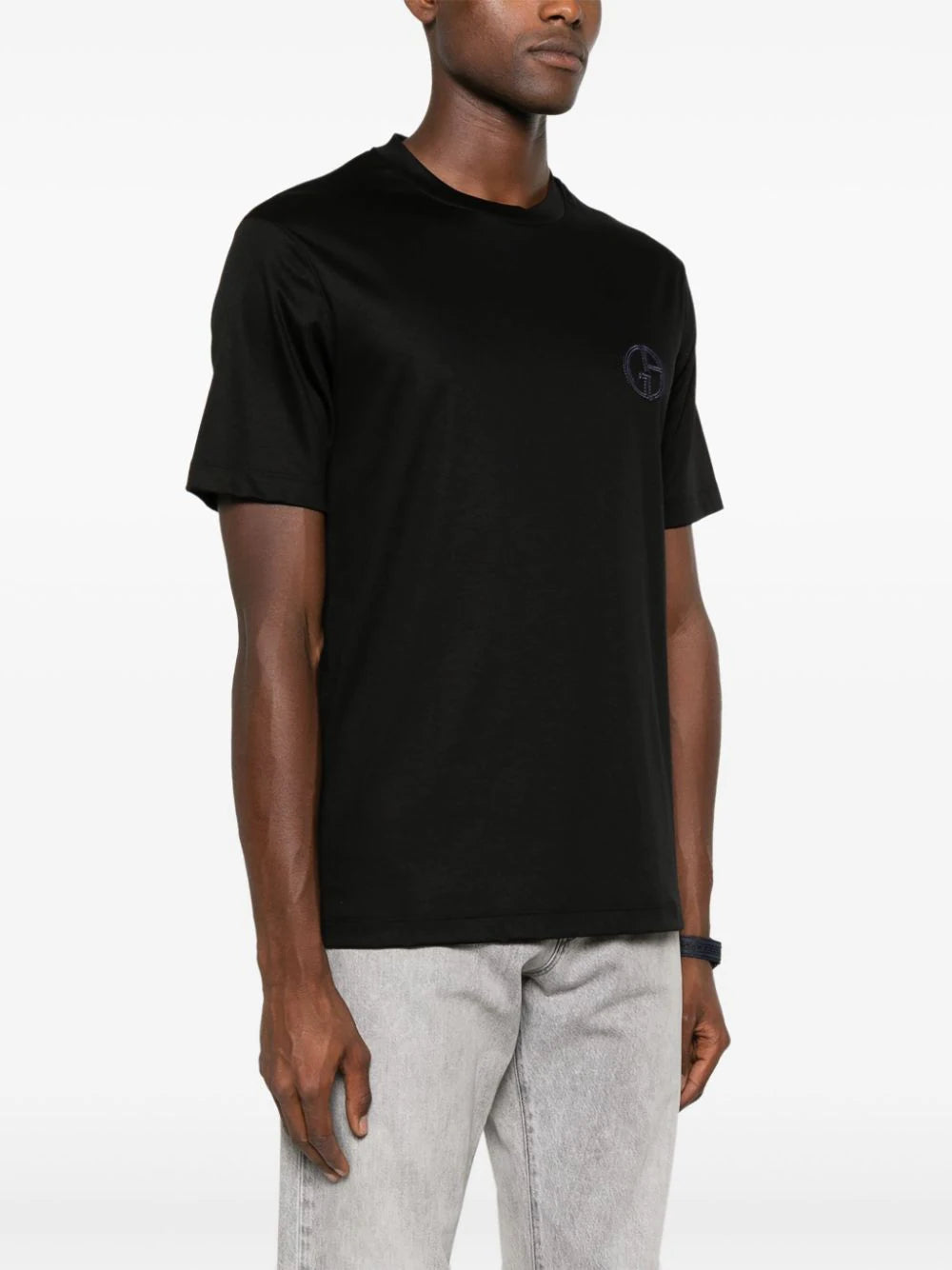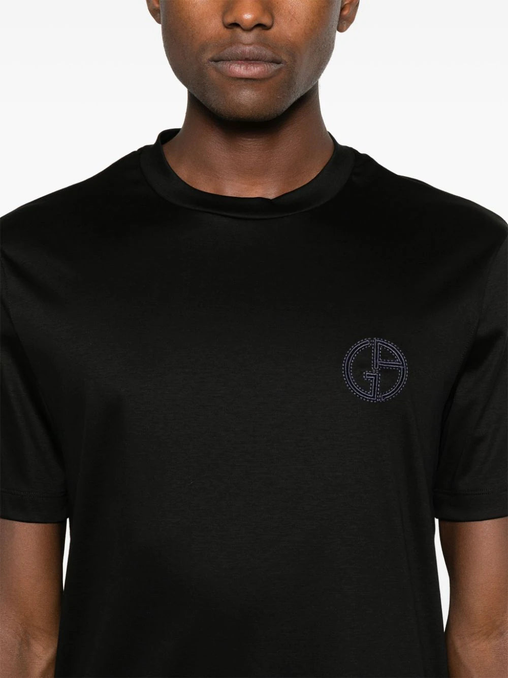 black cotton jersey texture round neck short sleeves embroidered logo at the chest straight hem