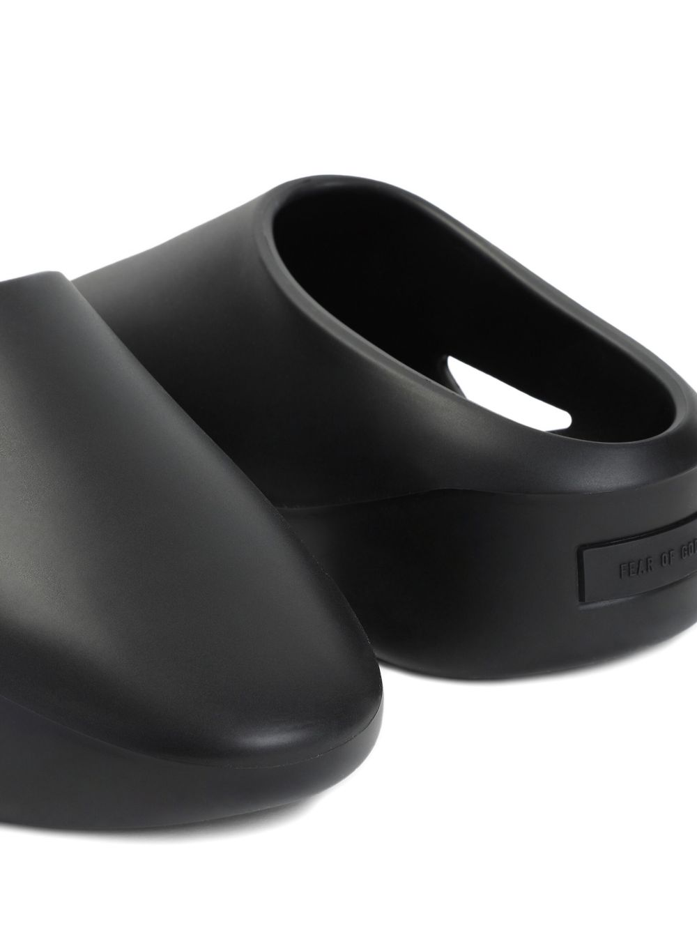 Introducing Eva Runner Slippers, the ultimate blend of fashion and comfort. Designed with a branded heel counter and cut-out detailing, these black slippers feature a round toe for added style. Experience the perfect fit and support with every step. Elevate your footwear game with Eva Runner Slippers.